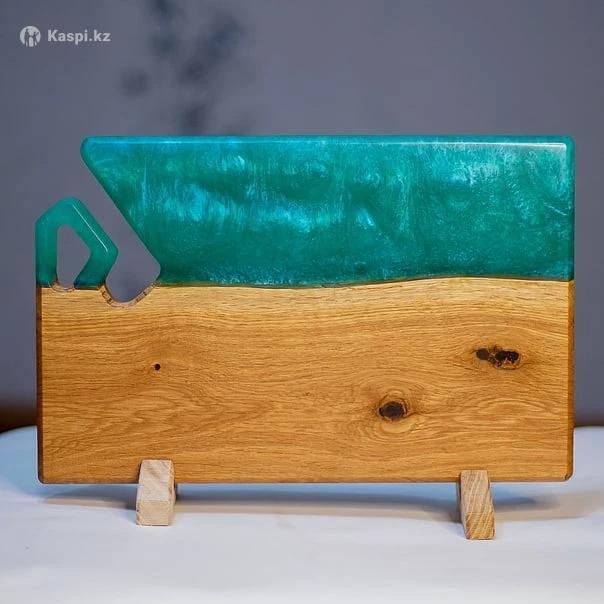 Сервировочная доска, ручной работы!🤗 Изготовлена из дуба и смолы Длина доски 40 см, ширина 25 см, толщина 2 см Такая доска прекрасно дополнит интерьер кухни и станет отличным украшением праздничного стола. Доставка по всему Казахстану