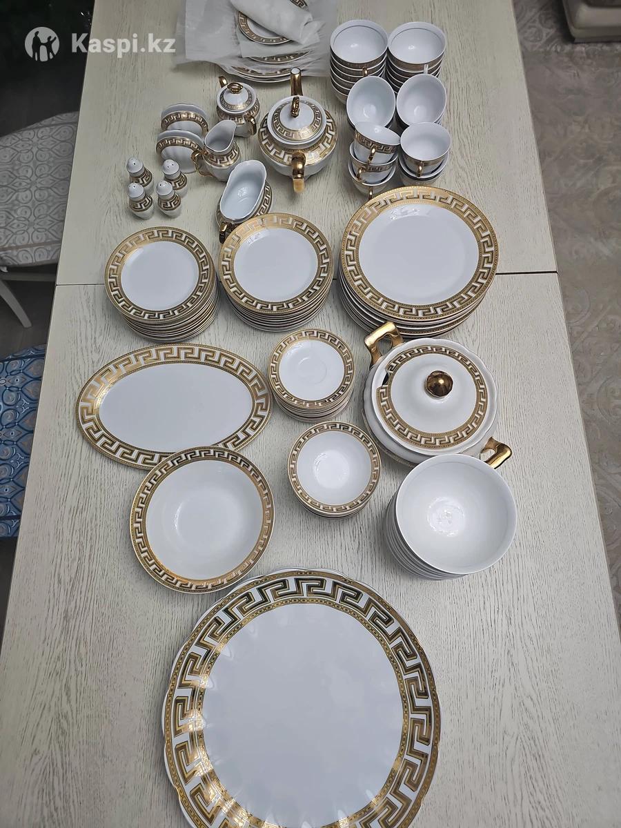 Продается столовый сервиз на 12 персон — 114 предметов Полный комплект, классический дизайн с греческим орнаментом. Состояние идеальное — без сколов, трещин и потертостей. Использовался редко, только по праздникам. Комплектация: Супница с крышкой — 1 шт Постановочные тарелки — 12 шт Порционные тарелки — 12 шт Десертные тарелки — 12 шт Кесе — 12 шт Салатник большой — 1 шт Салатницы — 12 шт Пиалы — 12 шт Блюдца — 12 шт Чашки для чая/кофе — 12 шт Блюдо овальное — 1 шт Большие блюда для горячего (бешбармак, манты и т.д.) — 2 шт Чайник — 1 шт Сахарница — 1 шт Молочница — 1 шт Соусница — 1 шт Этажерки — 2 шт Солонки — 2 шт Перечницы — 2 шт Салфетницы — 2 шт Всего: 114 предметов. Подойдет для семейных праздников, гостей и торжественной сервировки. Полноценный сервиз — ничего докупать не нужно. Разумный торг возможен.