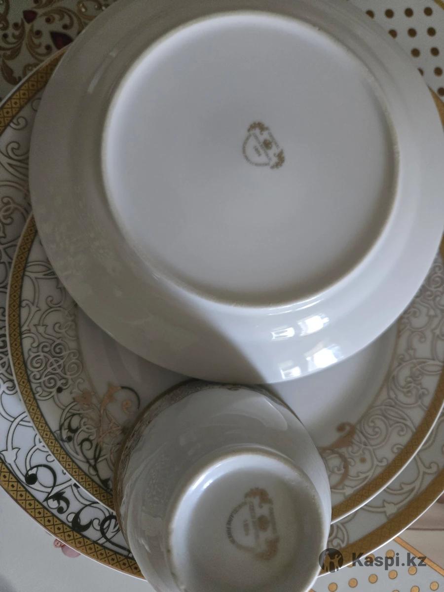 Продам сервиз 12 персон, чешский сервиз, 2 тарелки для бешбармака 1 чайник 1 сахарница 1 молочница 1 этажерка 3х ярусная 12 пиалушек 11 чашек 12 суповых тарелок 12 для второго блюда тарелки 12 пирожковые тарелки 12 подстановочные тарелки большие