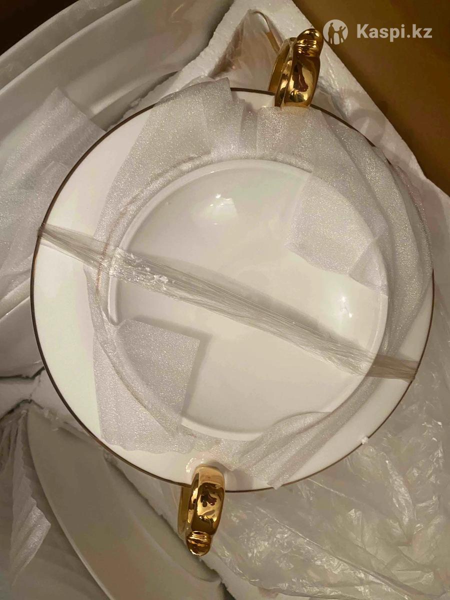 Сервис на 6 персон Фарфор Люкс В наборе 6 шт чашек 6 шт тарелок под чашки 6 шт тарелок для подачи 22 см 6 шт тарелок для подачи 20 см 6 шт глубоких тарелок 1 шт молочница 1 шт чайник 🫖 1 шт супница 6 шт кесе, пиала 2 шт овальных тарелок