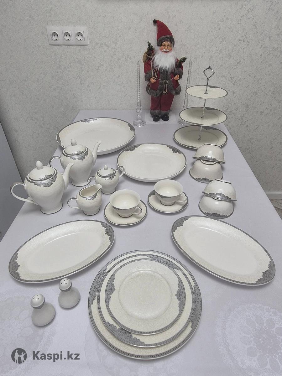 Блюдо большое-2 шт Блюдо маленькое- 2 шт Этажерка- 2 шт Тарелка большая- 12 шт Тарелка средняя- 12 шт Тарелка маленькая- 12 шт Тарелка овальная- 2 шт Перечница- 1 шт Солонка- 1шт Чайник - 2 шт Чашка чайная - 12 шт Блюдца чайные- 12 шт Пиала большая- 12 шт Пиала маленькая- 12 шт Молочник- 1 шт Сахарница- 1 шт