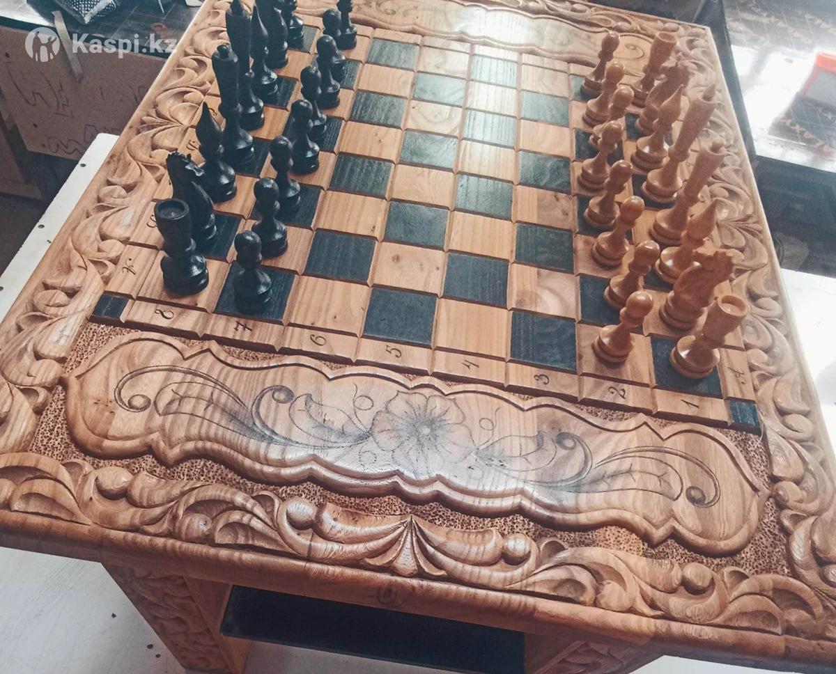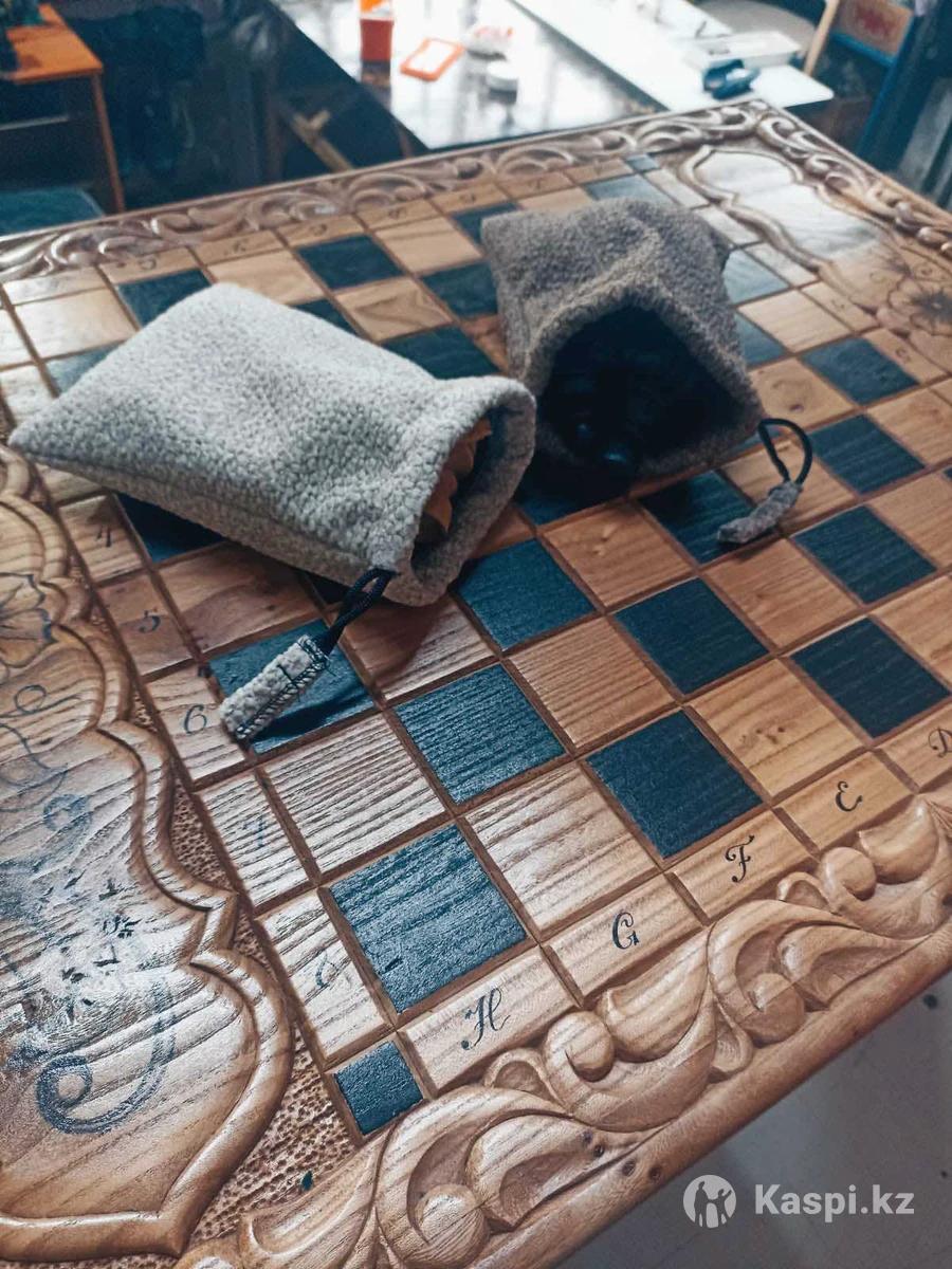 Шахмат ручной работы. Фигуры нарезаны вручную . Дерево массив карагач. Размер 6080