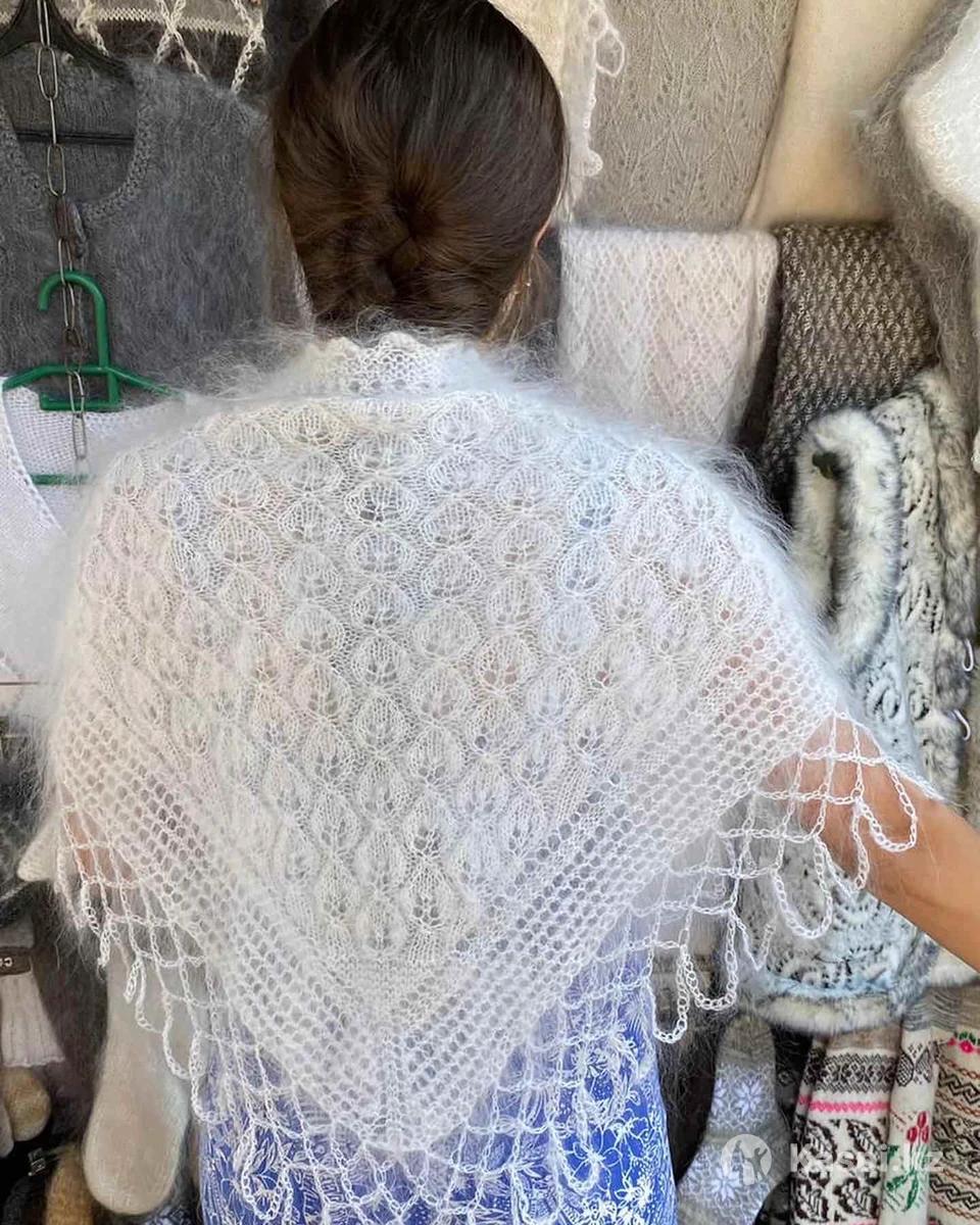 Пуховый платок из козьего пуха, Ручной работы, размеры разные,