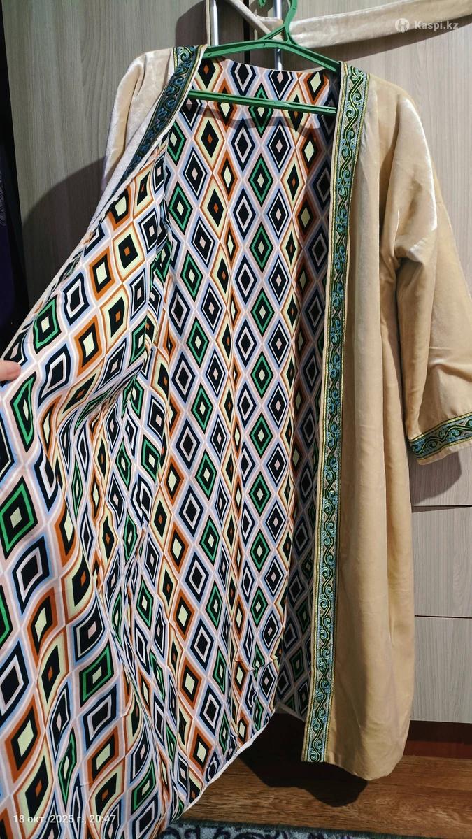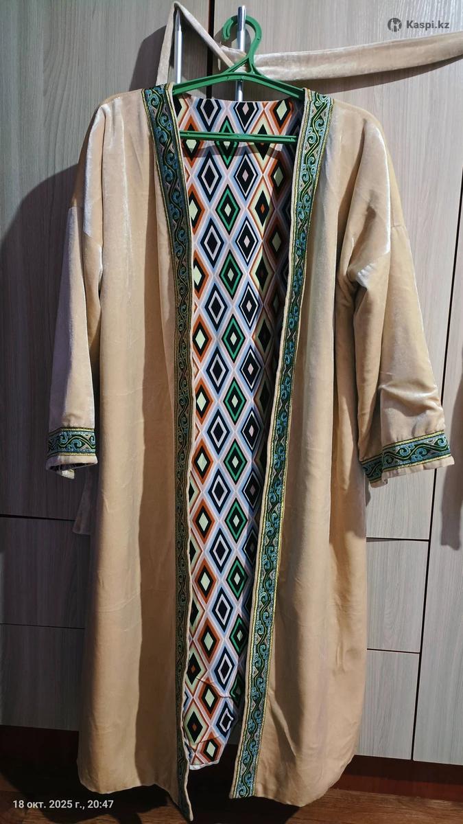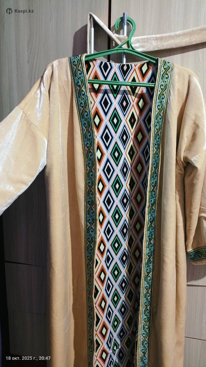 Қазақша шапан сатылады, белбеуімен, велюр матасынан тігілген, екі жақты киуге болады. 42-44-46 размерге дейін барады.