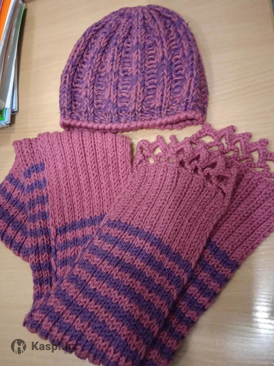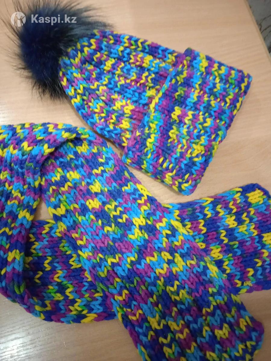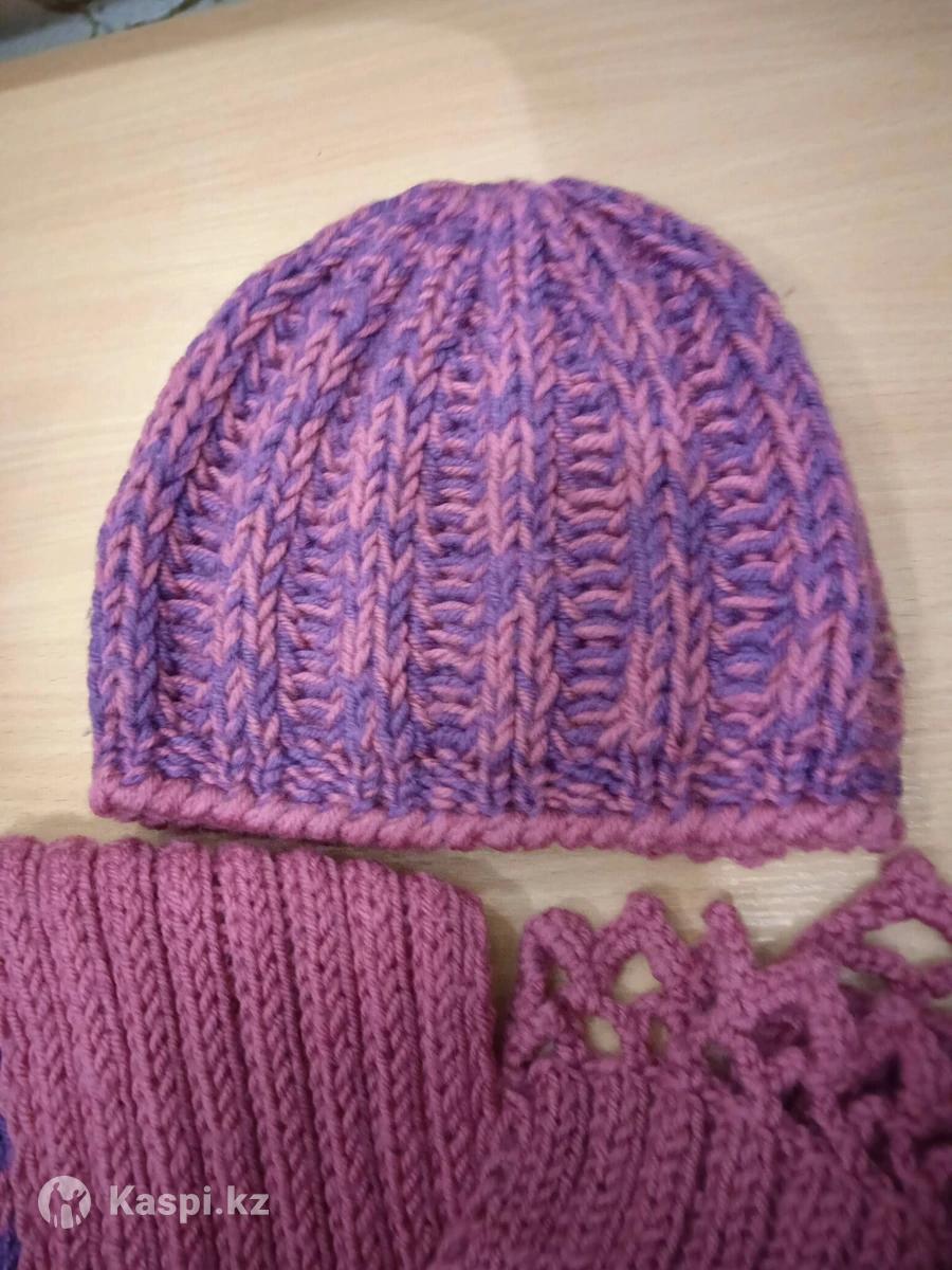 Шапка и шарф, 2 комплекта в наличии, ручная работа.15000т-синий комплект, 18000- розово-фиолетовый комплект.