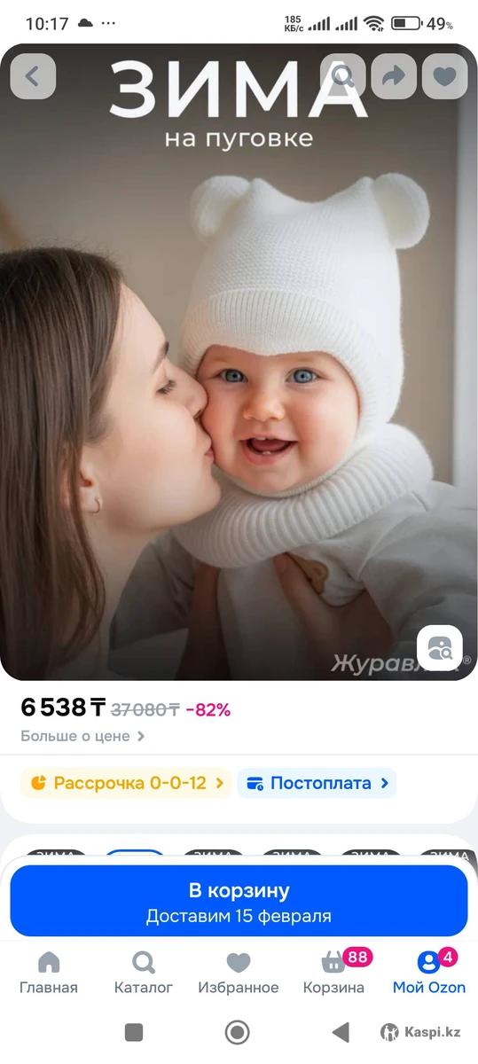 Коричневая размер 40-42 (0-3 мес) Белая размер 42-44 (4-6мес) В составе шерсть есть. Каждая по 2050 тг. Белую даже не надевали оторвали бирку просто. Коричневую пару раз одели.