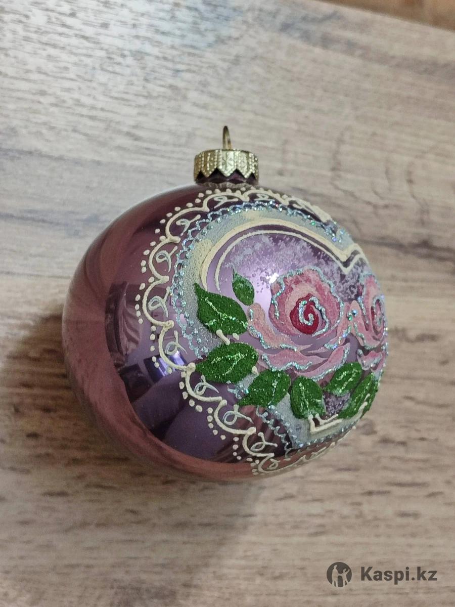 Шар на елку диаметром 10 см с романтичным принтом. Стекло.