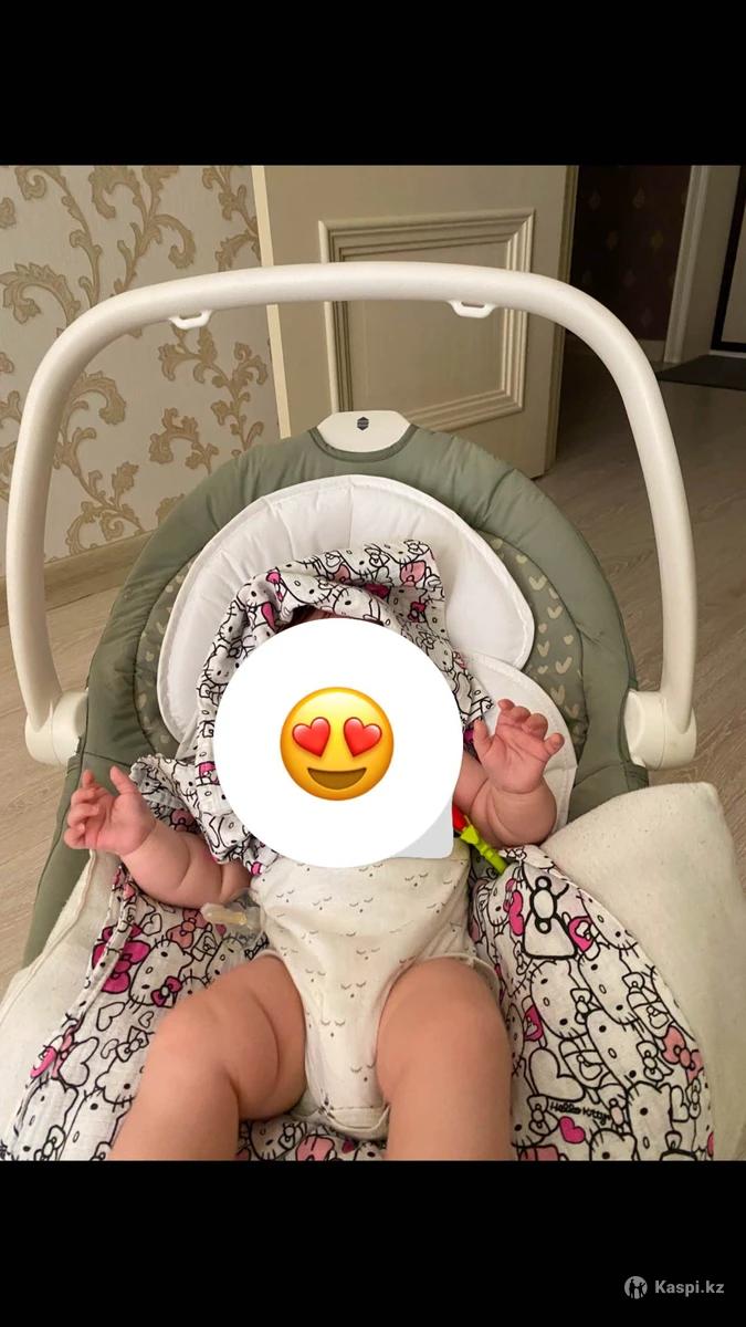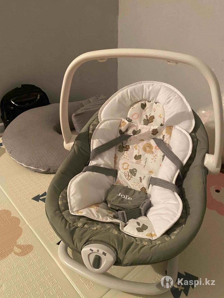 Шезлонг - Электронные качели Joie Sansa Leo В хорошем состояние , покупали за 130.000 Характеристики • От рождения до 10 кг • С вкладышем для новорожденного • 2 направления качания • 6 скоростей качания • Встроенная ручка • 3 уровня наклона спинки • 2 скорости вибрации • 5 классических и 5 природных звуков • Мягкий свет регулируется на 4 уровня яркости светильника • 2 игрушки • Работает от шнура или батареек • Минимальный возраст ребенка: с рождения • Максимальный вес ребенка: 10 кг • Сиденье и основа • Длина спального места: 70 см • Ширина спального места: 37 см • Режим укачивания: автоматический или ручной • Материал сиденья: приятная на ощупь ткань, снимается, стирается при 30° • Ремни безопасности: 5-ти точечные • Спинка регулируется, 2 положения наклона • Вибромодуль: 2 скорости (работает от батареек) Комплектация • Укачивающая электронная основа • Съемный шезлонг с ручкой и навесными игрушками • Съемный матрасик с подушечкой • Кабель для подключения к сети с 3 адаптерами на разные типы розеток Габариты • Размеры: 77,5 × 53,5 × 71,5 см (Д×Ш×В) • Вес: 7,4 кг Обзор сможете посмотреть в интернете - есть коробка документы все имеется . Забирать район майкудук