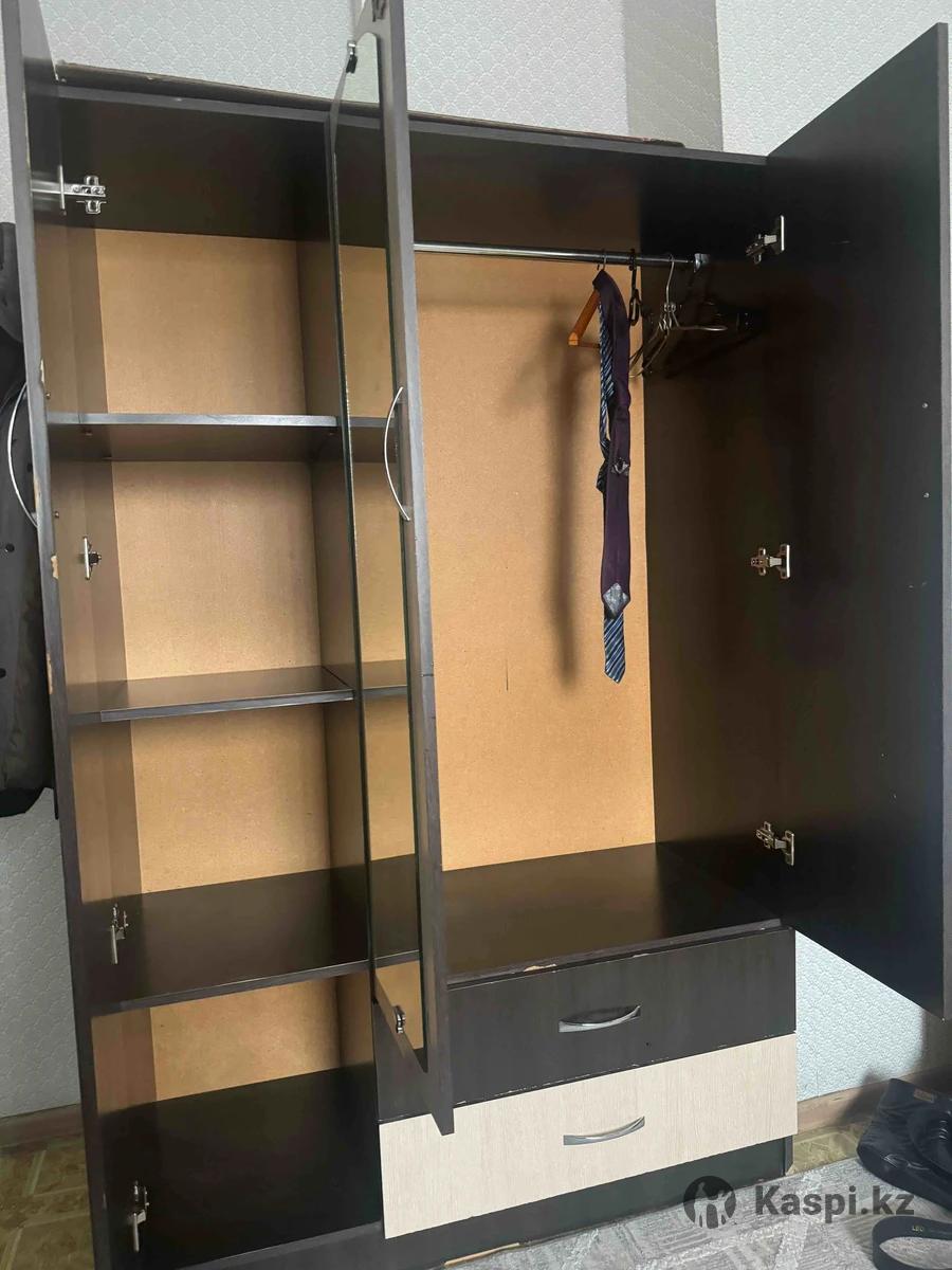 Продам трёхдверный шифоньер с зеркалом. Шкаф не новый, есть небольшие потертости и мелкие дефекты по корпусу (на фото постаралась показать), на функционал не влияет. Дверцы закрываются нормально, петли рабочие, ящики выдвигаются. Очень вместительный: полки, отделение под вешалки и нижние ящики. Зеркало целое. Отличный вариант на съёмную квартиру, дачу или на первое время. Самовывоз. Цена с учётом состояния.