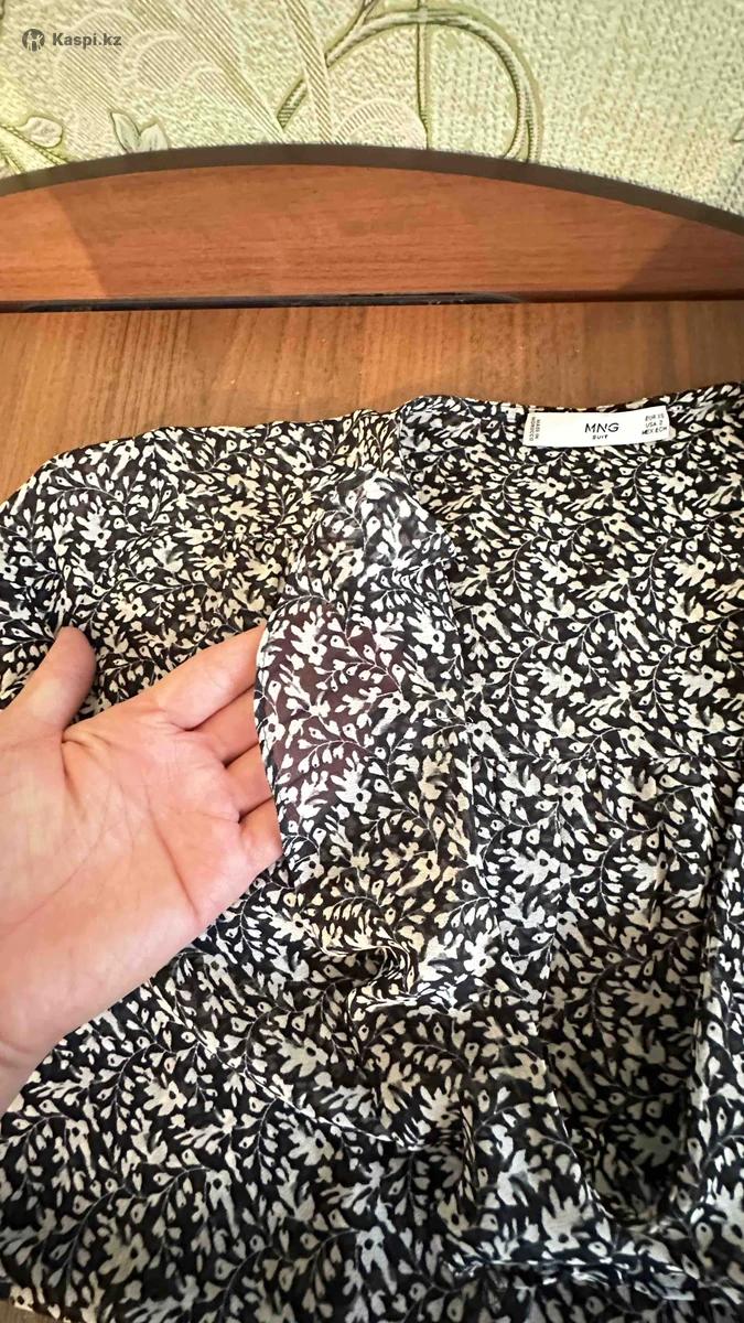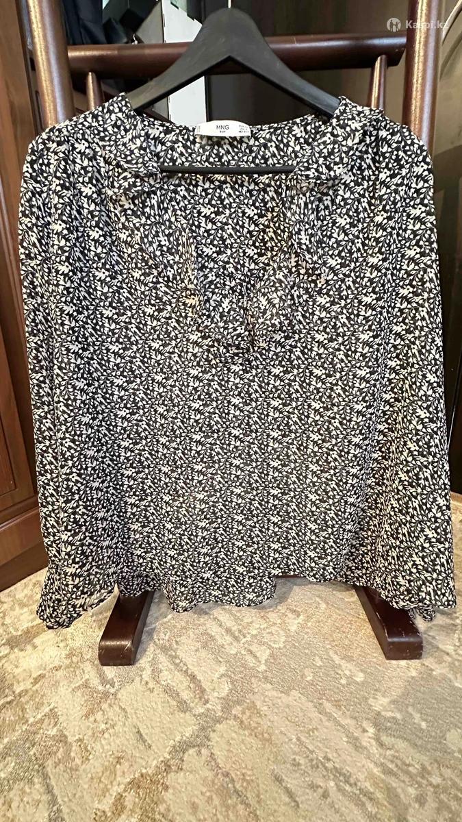 Шифоновая блузка от Mango Вырез горловины в образный неглубокий вокруг горловины имеется рюшки рукава длинные на манжете блузка свободного кроя.