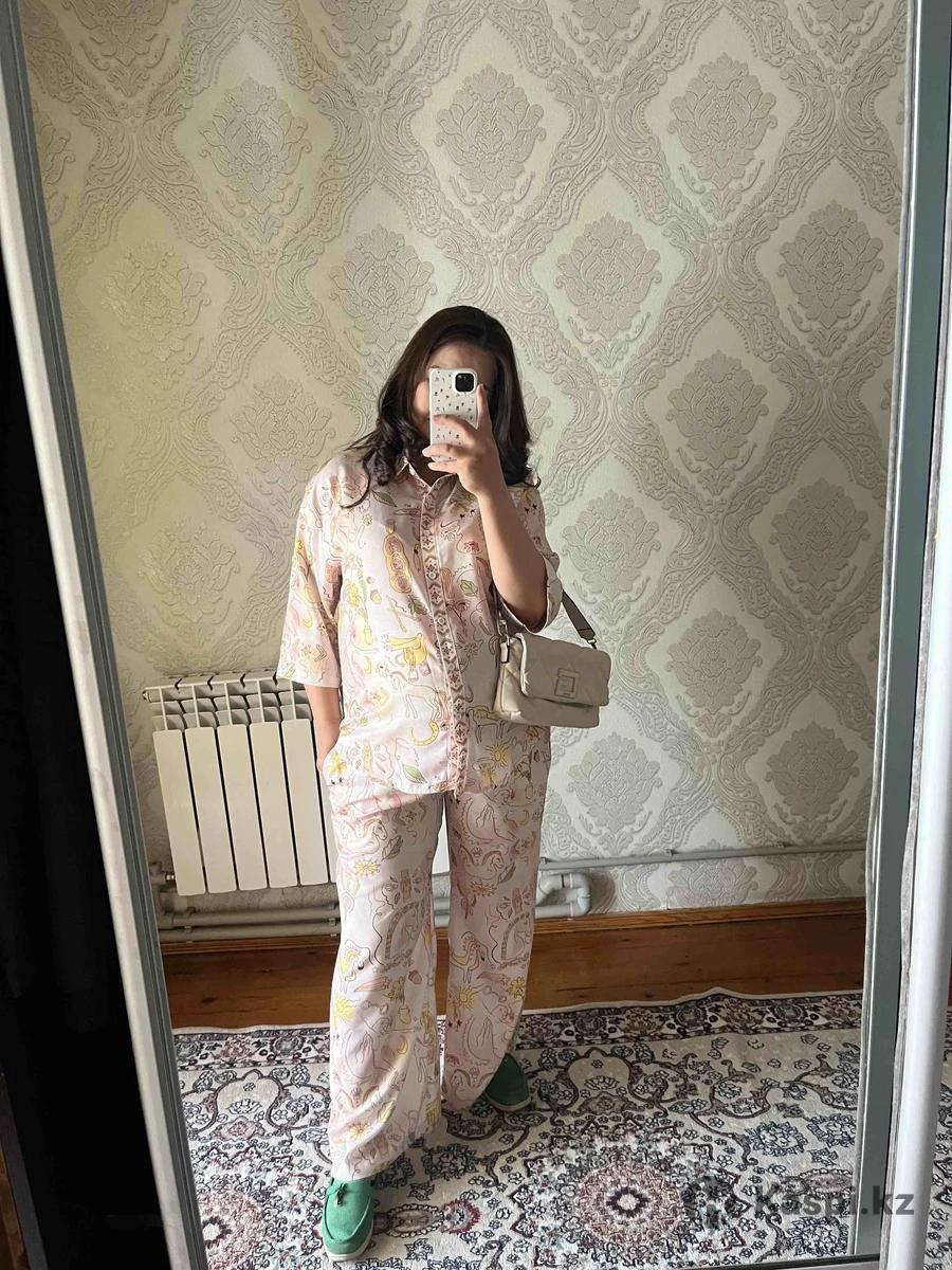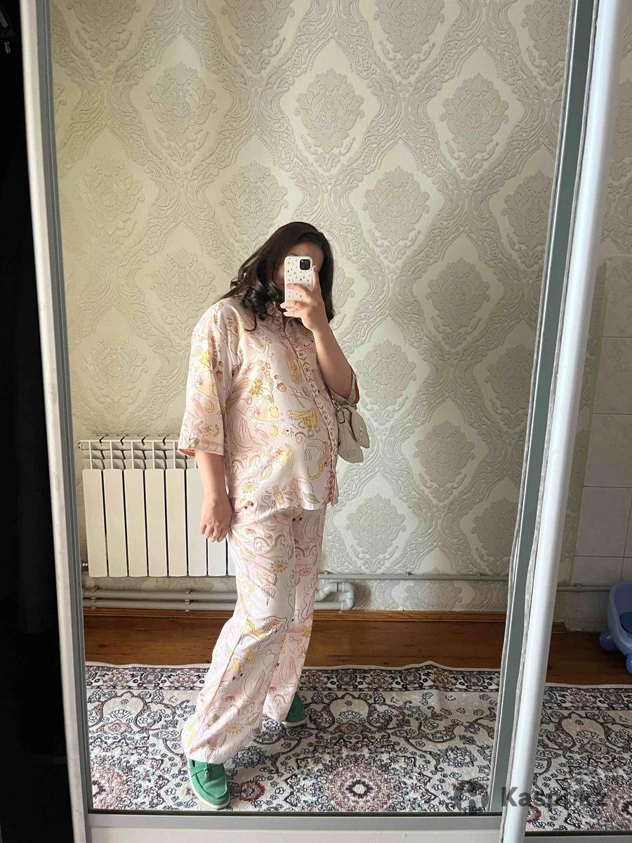 Шикарная двойка размер на 46-48 подойдет.Надевала пару раз,состояние идеальное,можно и для беременных,талия на резинке. Продаю из за того что после родов стало большое. Цена 9000 тг. Номер: