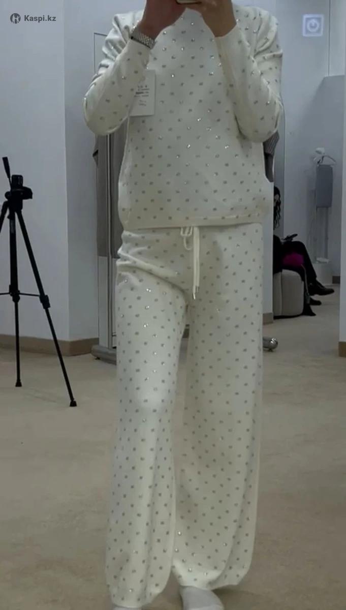 Продается шикарная двойка от итальянского бренда Lara, белый со стразами, размер подойдет от 46 до 50, заказывала себе, не подошли по ростовке, думаю идеально сядут на рост до 170, у меня 175 мне брюки коротковаты, брала за 50 отдам за 40