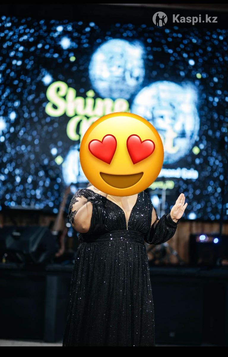 Продаю платье, ношу 54-58 размер, в среднем 56. мой рост 160 см. данное платье сидит свободно. продаю в связи с тем что уже одела 1 раз, больше одевать не буду, самое главное пайетки не сыпятся и не чешут - для меня это было важно. если вы стесняетесь места у груди, можно прошить, есть материал этого платья. мкр Туран 1. пишите или звоните , по телефону связь плохо ловит. покупала платье за 44000.