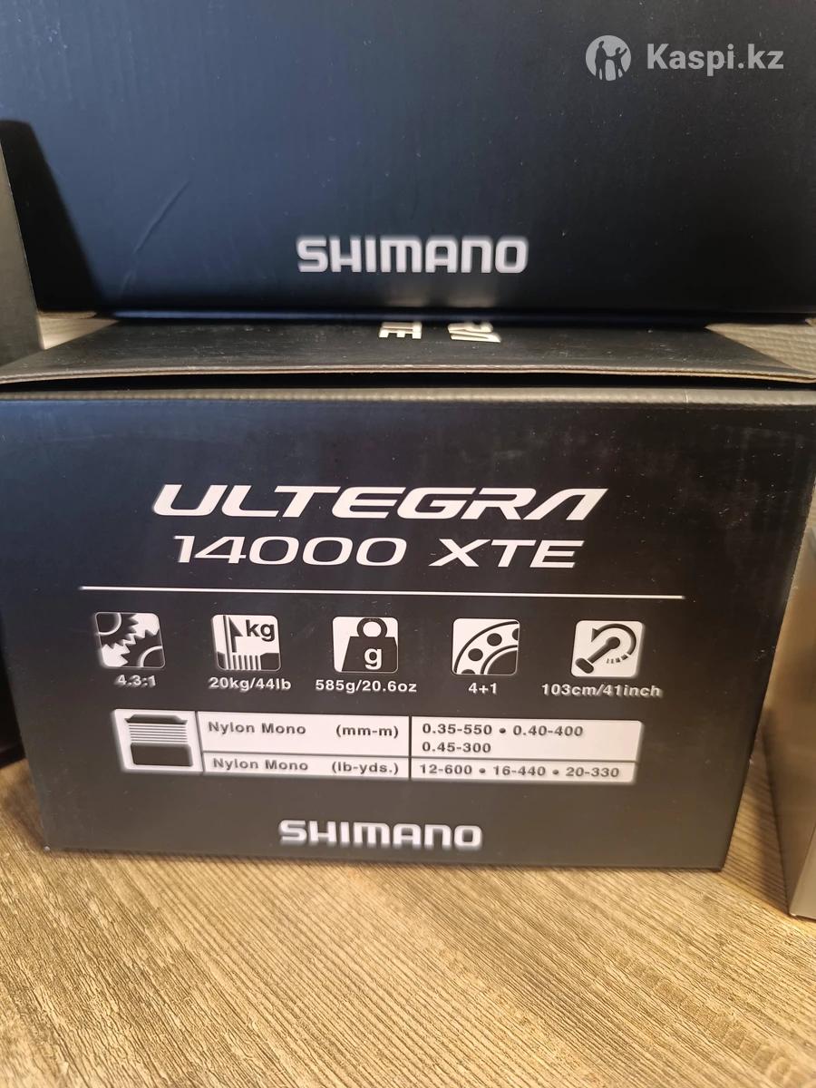 Shimano ULTEGRA 14000 XTE В продаже новые катушки в рекламе не нуждаются, вкручивающиеся ручка, алюминиевая дополнительная шпуля, редьюсоры (экономпйзеры лески), легкий вес. Характеристики: - Карбоновый корпус Ci4+. - Технология Shimano Hagane. - Технология X-Ship. - Технология накопителей SilentDrive. - Технология жесткого литья, усиливающая ось катушки. - Медленные колебания Super Slow 5. - Холоднокованные приводные элементы. - Коробка передач Hagane. - Более медленный износ звездочки. - Комплект катушечных редукторов. - Запасная шпуля в комплекте. - - Лесоёмкость: 0.35 мм - 550 м, 0.40 мм - 400 м, 0.45 мм - 300 м. - Передаточное число: 4.3:1. - Вымотка за оборот: 103 см. - Количество подшипников: 4+1. - Нагрузка на фрикцион: 20 кг. - Вес: 585г.