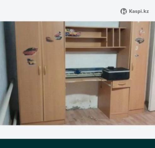 Шкаф в детскую. Имеются место для одежды(с стороны для вешалки, а с др . стороны полочки),стол для занятий и полки для книг. Состояние среднее. Находится в 20 км от города. В чаганском с/о.
