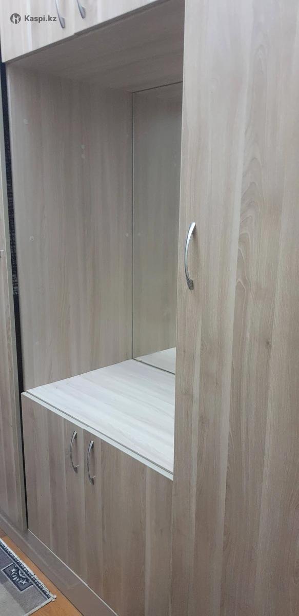 Вместительный шкаф с зеркалом. Удобная конструкция: полки, закрытые секции и центральная ниша с зеркалом. Состояние хорошее, без серьезных повреждений. Цвет: светлое дерево. Цена: 28 000 тг. Самовывоз.
