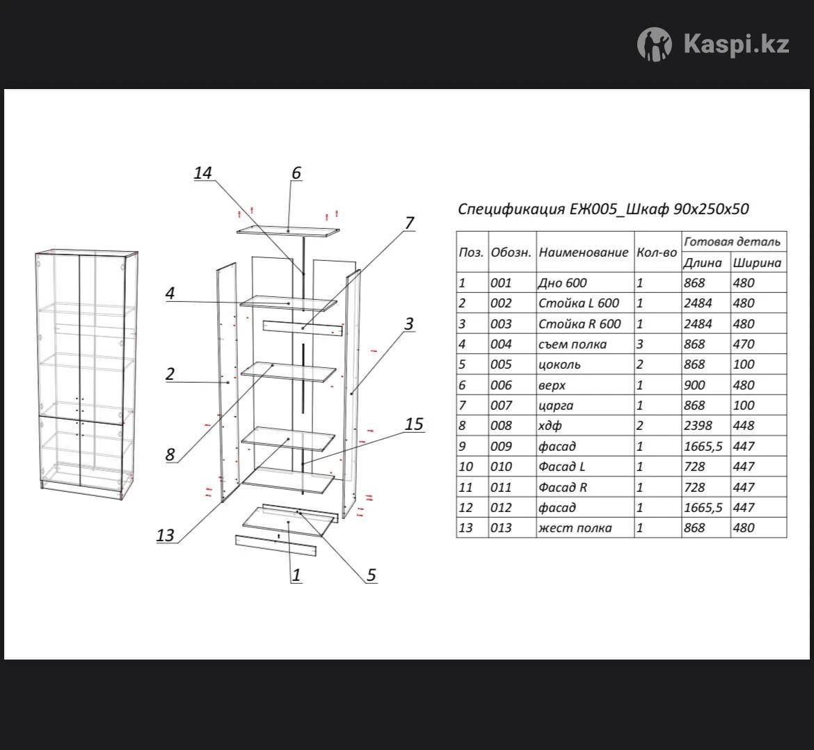 Шкаф фабричный, Россия Высота 250, ширина 90. Цена 46.000 тенге, торг В новом состоянии, в использовании меньше года. Качество отличное Есть схема-инструкция, все полки подписаны, поэтому разобрать или собрать легко. Удобен и в комнату и на балкон. Находится в районе поликлиники «Аспан».
