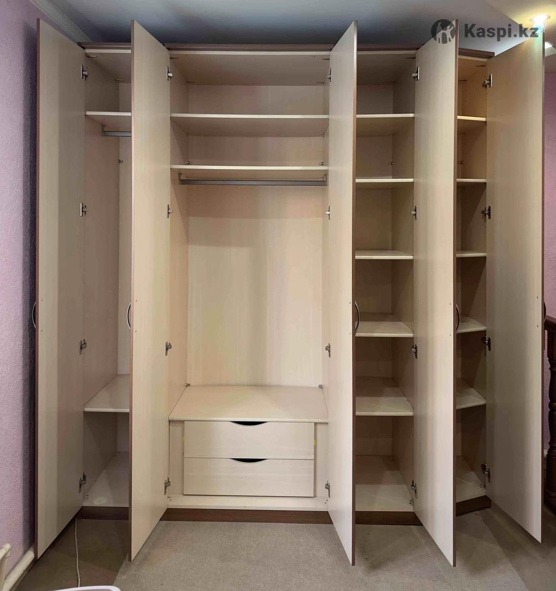 Шкаф в отличном состоянии, удобные глубокие полки, плавно скошенная одна крайняя сторона визуально делает шкаф законченным, 2 отдела для платьев, рубашек, скрытый внутренний комод, актуальный цвет дерева и качество, проверенное годами. Размер Ширина 208 Высота 235 Глубина 70