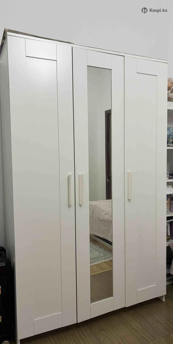Шкаф IKEA Brimnes, 3-дверный, распашной. Параметры: ширина 117 см, глубина 50 см, высота 190 см. Пользовались аккуратно, все полки целые, в отличном состоянии, без царапин и повреждений.
