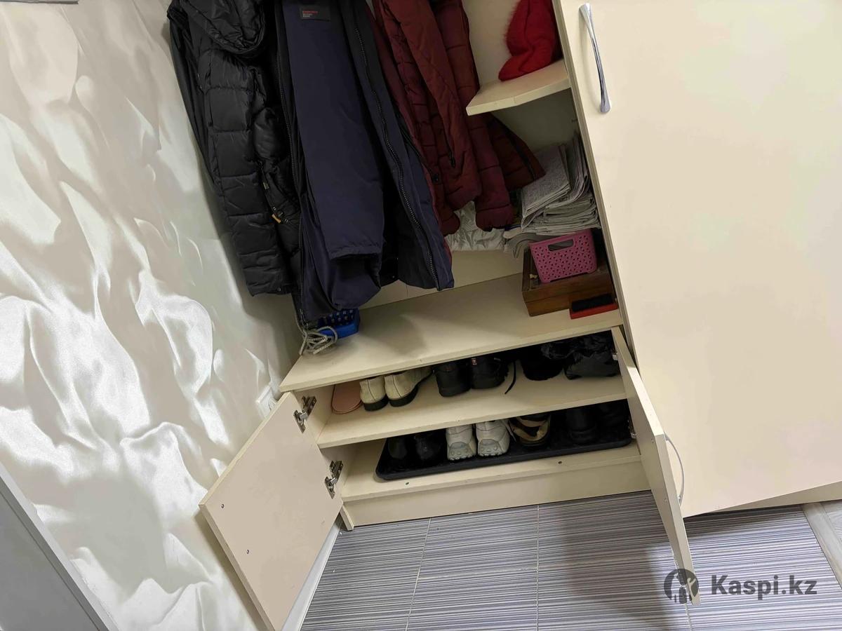Шкаф с крючками для одежды, полкой для шапок, тумбой с дверцами для обуви (высота 50 см, глубина 40 см), платьеного шкафа (ширина 50 см, глубина 50 см). Общий размер высота 200 см , ширина 135 см. В отличном состоянии , универсальный цвет, материал ЛДСП