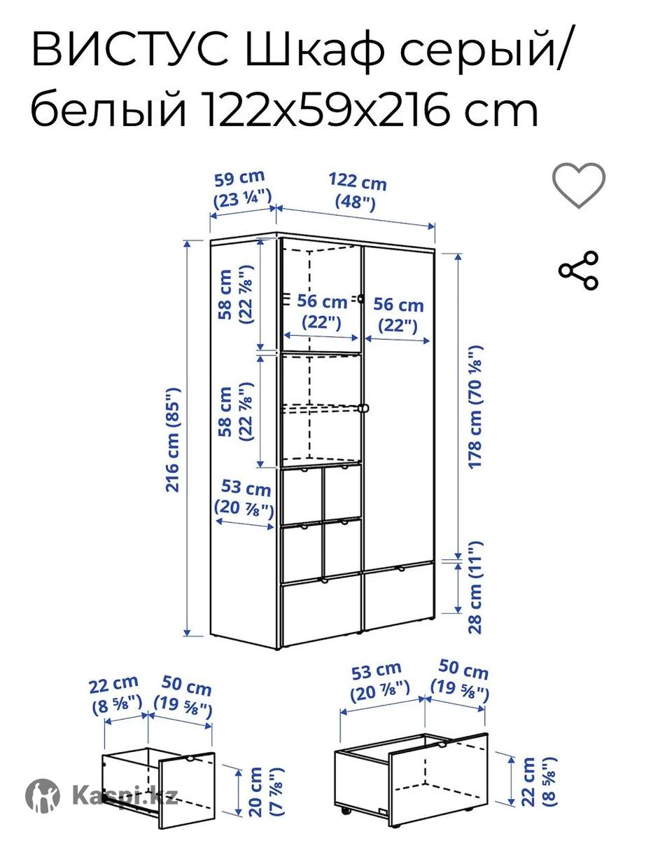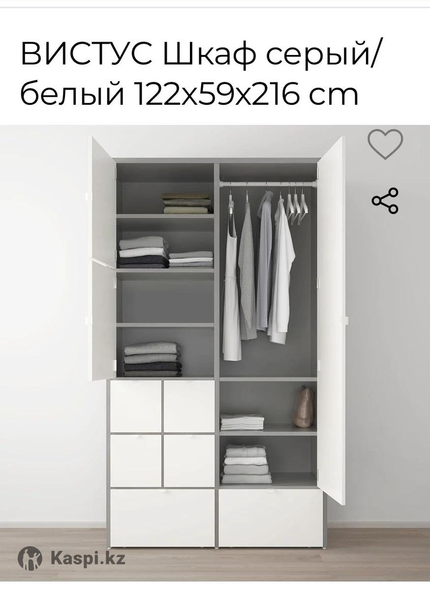Шкаф ИКЕА оригинальный, в идеальном состоянии все механизмы работают. Новый стоит больше 400000 тенге. Все размеры на фото. Очень удобный и вместительный.