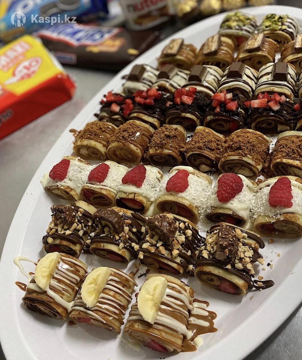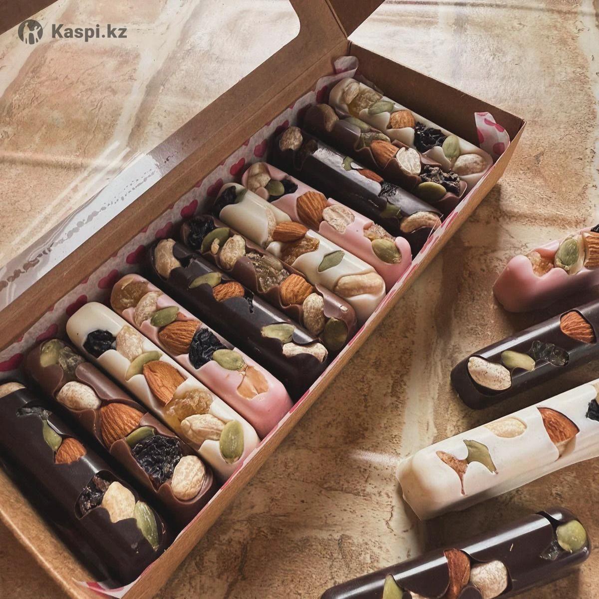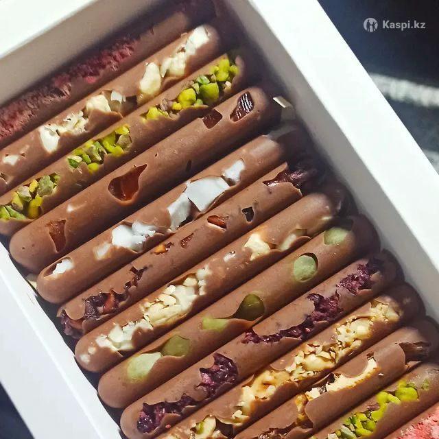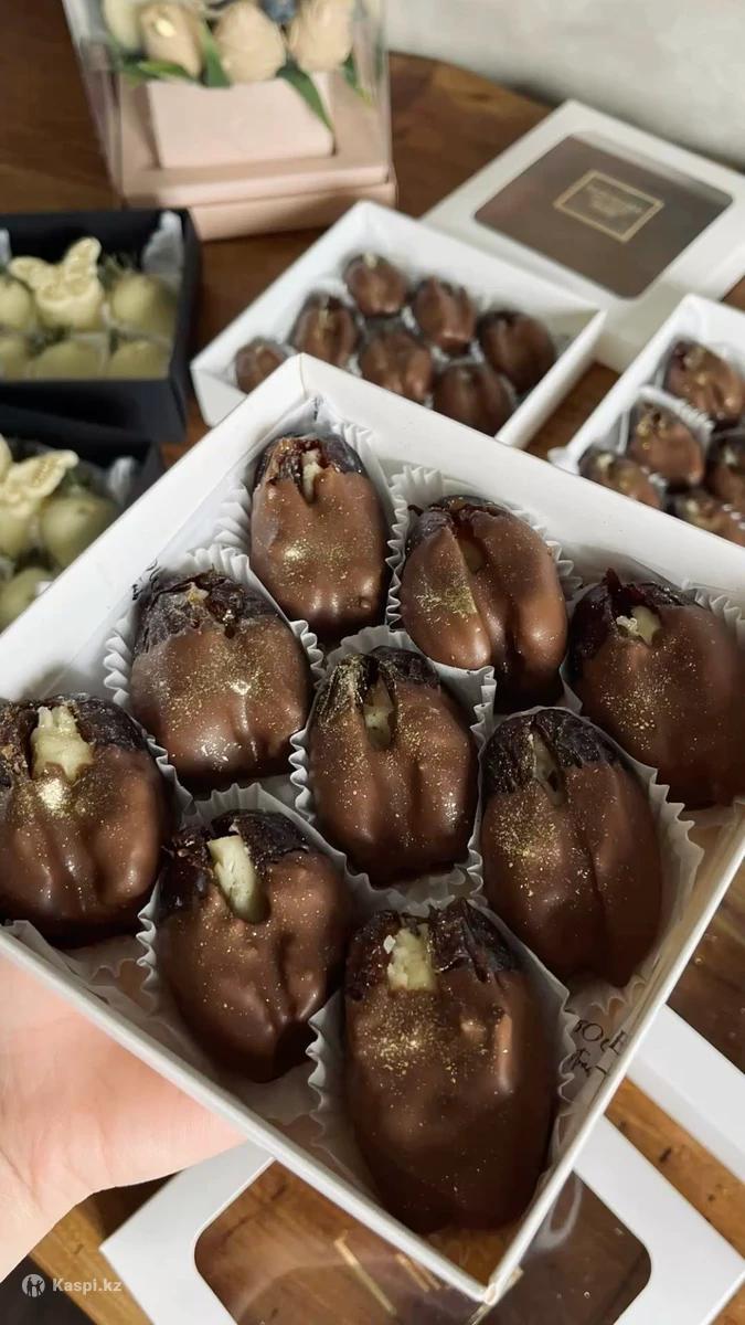 Шоколад ручной работы.Блинчики свежие,финики в шоколаде,клубника в шоколаде можете заказать.