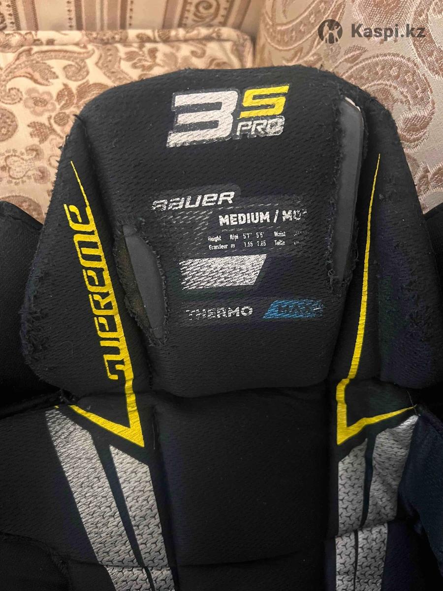 Трусы Bauer Supreme 3S Pro S21 размер М на 155-165 см профессионального уровня Покупали у хоккей плюс, носили 1 сезон Размер регулируется Высокопрочный нейлон плотностью 840 Den, из которого пошит чехол трусов, отлично противостоит износу, сохраняя при этом хорошую воздухопроницаемость. В задней части чехла используется вентилируемая сетка, которая обладает высокой прочностью и отличной эластичностью, чтобы игроки не теряли подвижность. Центральный щиток, закрывающий позвоночник, выполнен из хорошо вентилируемой пены Vent Armor Foam, которая усилена пластиковой вставкой. Дополнительную защиту позвоночника создает синтетический материал Adaptiv Skin, который устойчив к порезам и отлично амортизирует удары. Защита копчика имеет сегментированное строение и выполнена из пены двойной плотности и пластиковых вкладок. Область почек закрывают завышенные элементы, выполненные из литого пластика, который покрыт стандартной пеной. Защита почек имеет новую конструкцию с тонкой сегментацией Flex Forward Break, которая позволяет телу игрока двигаться свободно, сохраняя при этом покрытие и защиту вокруг талии. Область тазобедренных суставов защищена элементами, выполненными из литого пластика, покрытого стандартной пеной. Бедра закрываются набедренными щитками, которые выполнены из формованного пластика, облицованного плотной пеной. Набедренные щитки съемные, что позволяет отрегулировать их расположение и подобрать комфортную посадку. Внутренняя подкладка Thermo Max+ отлично справляется с излишками влаги, а также имеет бактерицидную пропитку, которая предотвращает появление бактерий, вызывающих запах. Данная модель имеет молнию под поясом, расстегнув которую можно увеличить длину трусов на один дюйм, что делает эту модель привлекательной для высоких игроков и для молодых игроков, которые еще растут. Нейлоновый пояс с прочным карабином и шнуровка позволяют надежно зафиксировать трусы на талии игрока. Молнии внизу штанин позволяют увеличить их ширину при необходимости, а также позволяют одевать трусы после того, как одеты коньки.