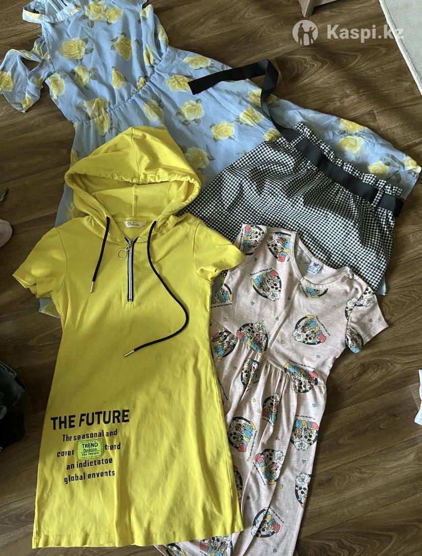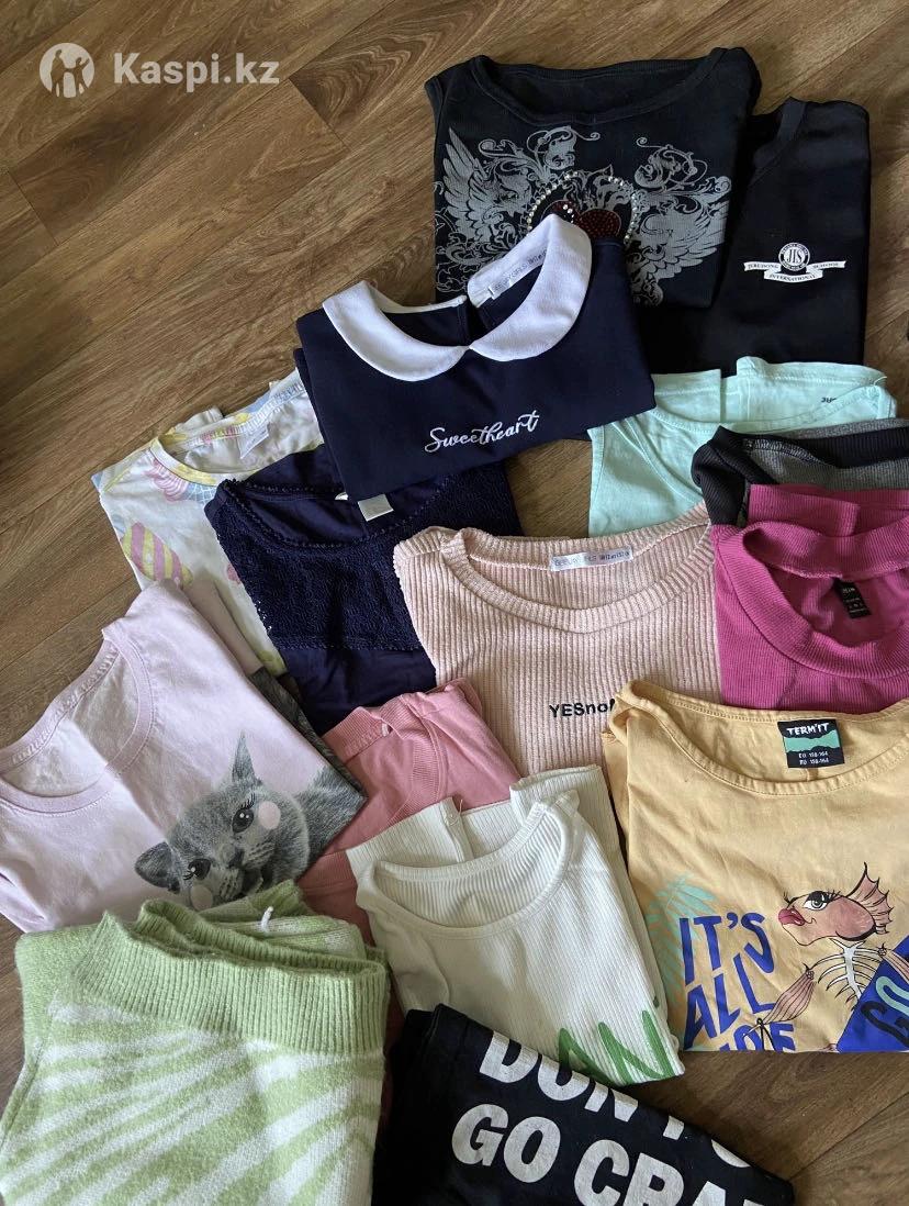 Большой пакет вещей на девочку от 8 до 12 лет В пакете около 100 штук вещей На фото не все вещи Есть все и штаны и платья и шорты и футболки и кофточки Цена за весь пакет вещей 12000 тг