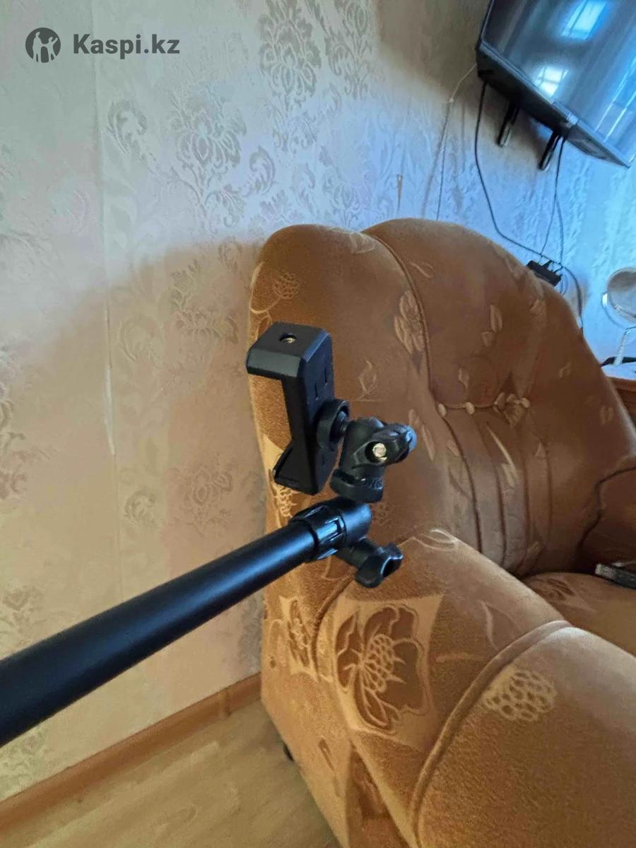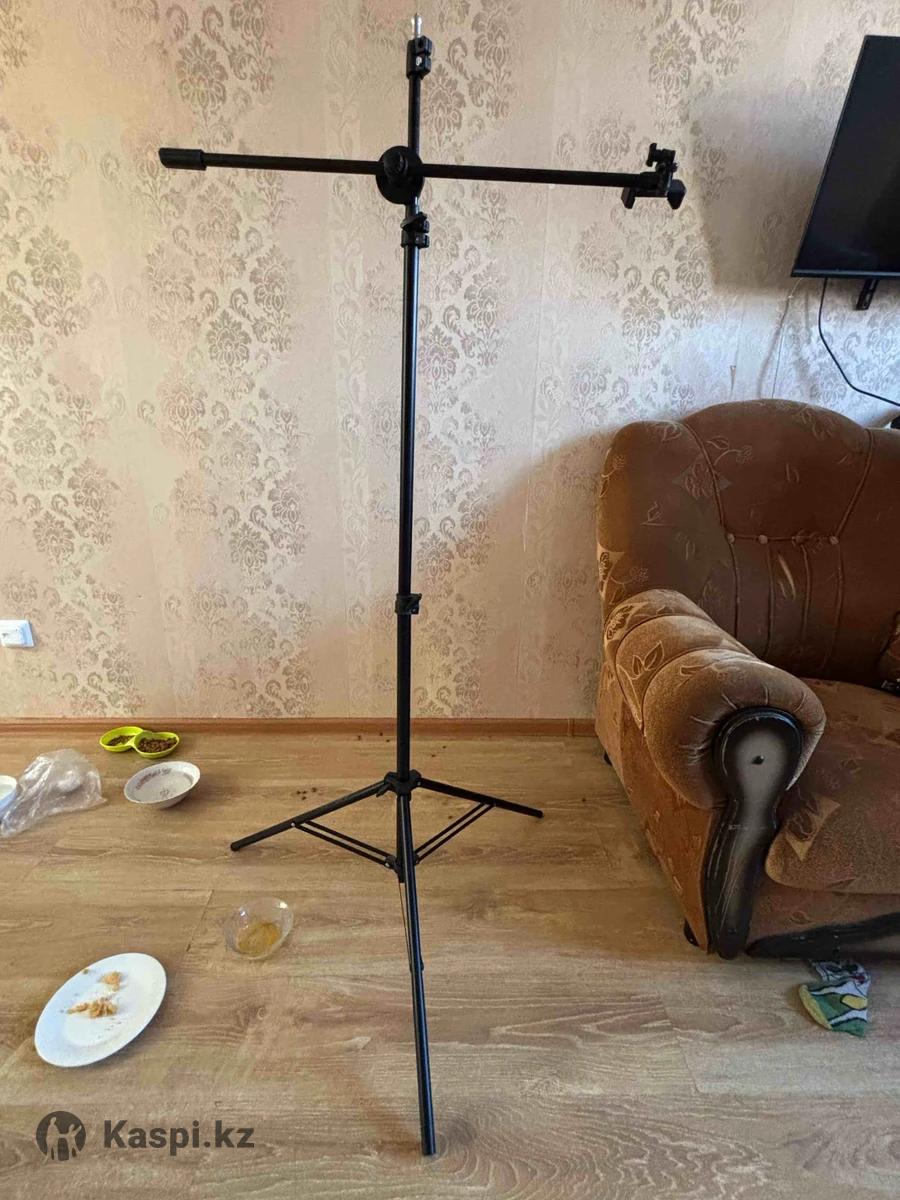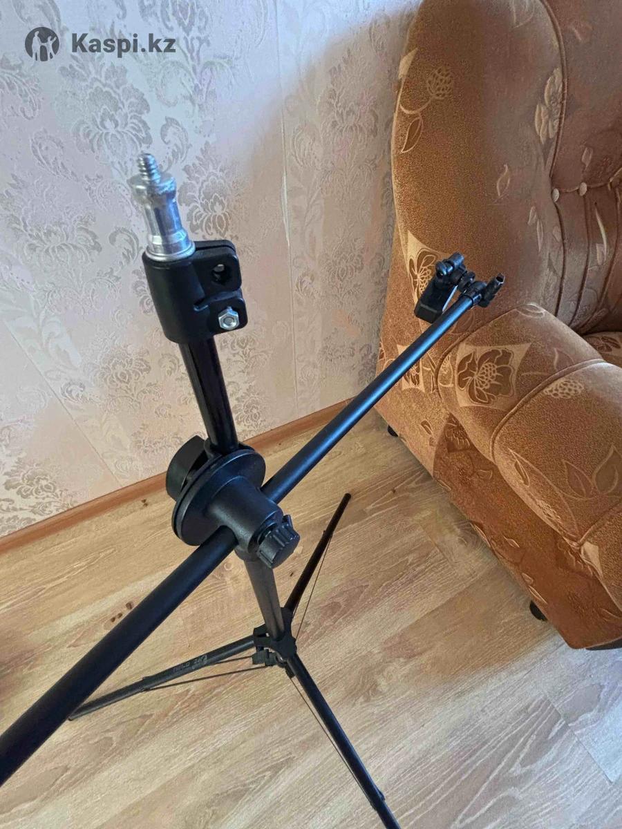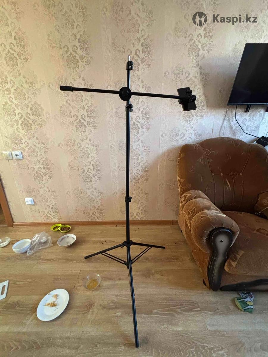Штатив немного сломан (верхний отдел не фиксируется), но свои функции выполняет, доп держатель для телефона, можно снимать поверхности сверху