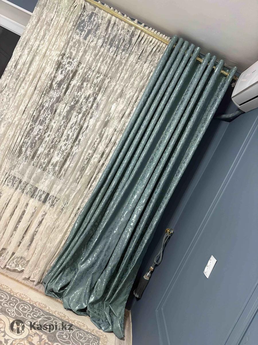 Тюль, шторы и карниз. Тюль бииктиги 2,60/ ени 6 метр Шторы бииктиги 2,68/ ени 3 метр Карниз осы турганда ени 3,30 метр Карниз золотистый, тура осылайынан сатылады. Жагдайы оте жаксы. Багасы баринин общий 35 мын тенге.