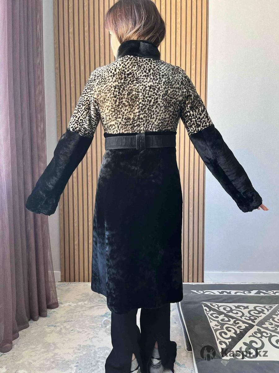 Шуба мутон черная, С леопардовым принтом есть вставки Норки. Внутренняя часть кожа, атлас.