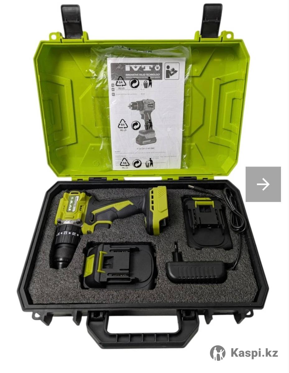 Супер мощный (20v) бесщеточный шуруповерт от IVT icsd 20 с металлическим "патроном" , в фирменном пластиковом кейде с зарядкой и двумя аккумуляторными батареями.