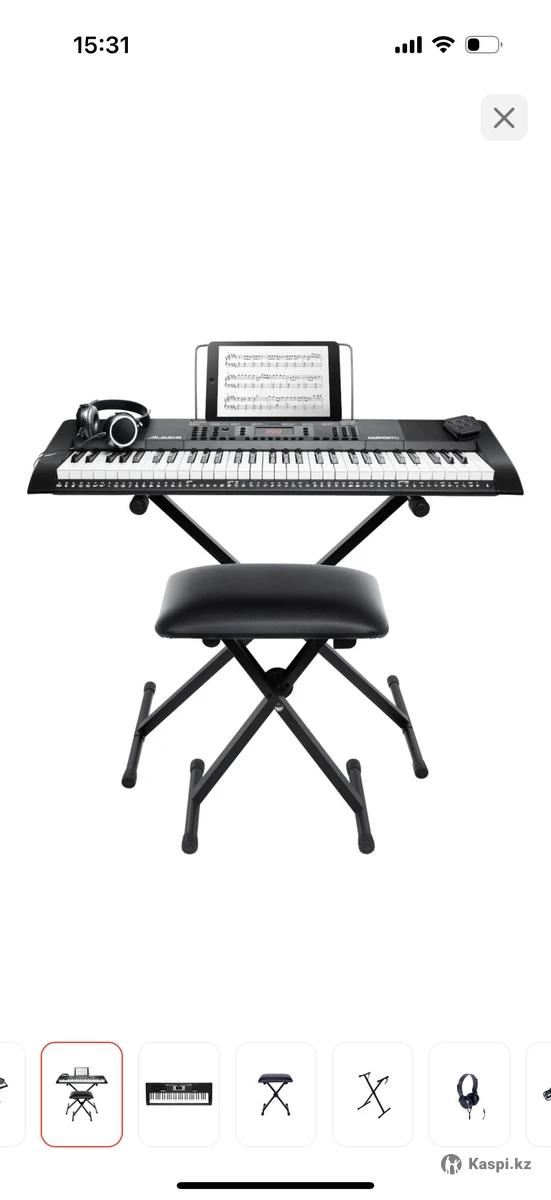 Синтезатор в идеальном состоянии Клавиатура Alesis Harmony 61 МКЗ имеет 61-у фортепианную клавишу, встроенные динамики и 300 высококачественных встроенных звуков, охватывающих самые разные инструменты: фортепиано, струнные, духовые, деревянные духовые, перкуссию, молоточки, гитары, синтезаторы, даже звуковые эффекты! Вы можете наложить несколько звуков вместе в режиме «Dual» или разделить два звука на клавиатуре в режиме «Split». Harmony 61 МКЗ также имеет 40 встроенных демонстрационных песен и 300 встроенных ритмов аккомпанемента, которые позволяют мгновенно создавать песни в самых разных жанрах. Вы даже можете записывать свои собственные песни, используя режим «Запись»! -61 клавиша в стиле фортепиано -300 высококачественных встроенных звуков с режимами наложения и разделения -Режим песни в одно касание с 300 встроенными ритмами -Подыгрывайте 40 демонстрационным песням или записывайте свои собственные -Встроенные динамики -1/8-дюймовый разъем для наушников отключает звук динамиков во время частной практики -Наушники, педаль сустейна, подставка для клавиатуры и скамья в комплекте