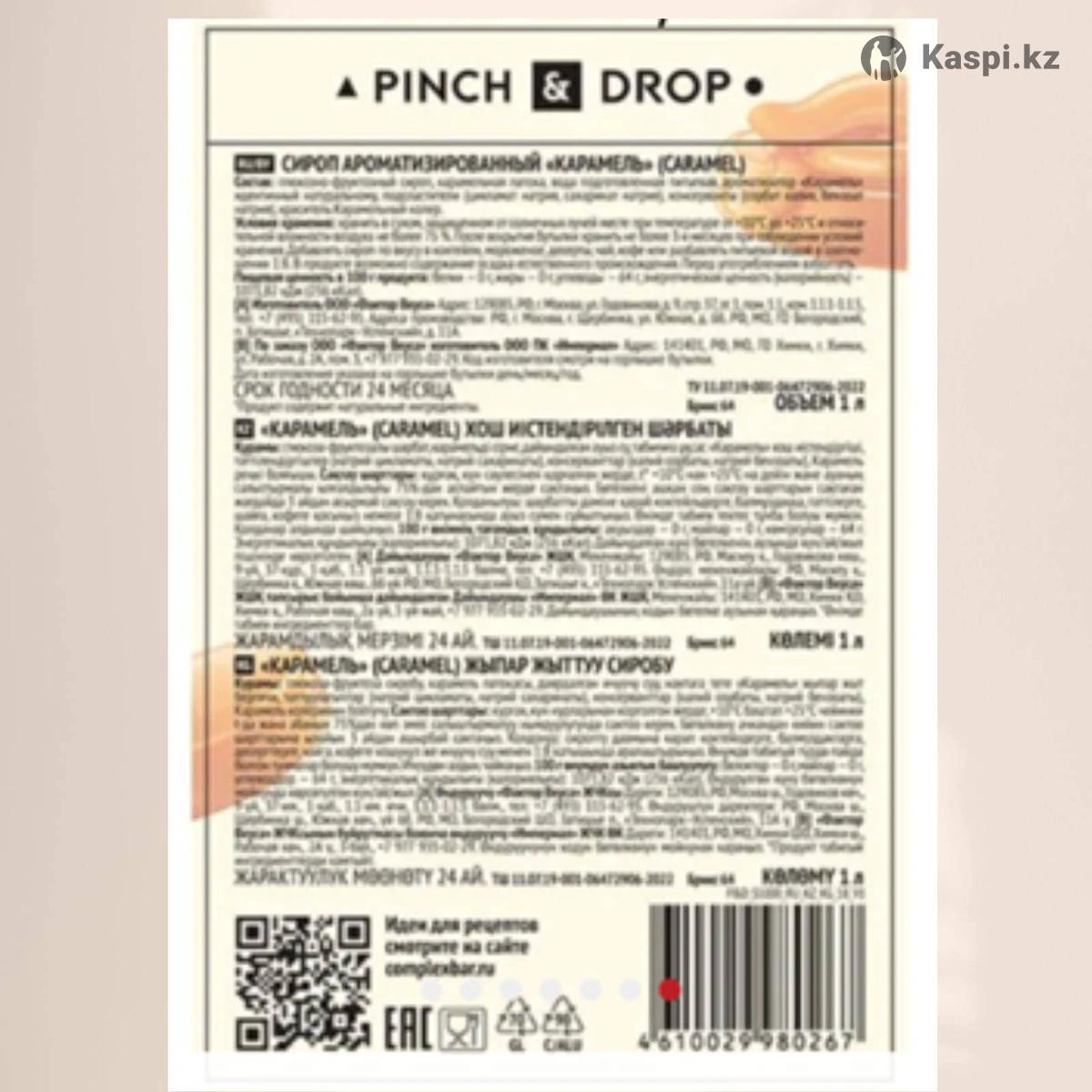 Сироп ароматизированный PINCH&DROP " Карамель". Для добавления в кофе, коктейли, мороженое, десерты, чай. Объем 1000 мл. В стеклянной бутылке. Производство: Россия. 1 шт. По г.Астане возможна доставка