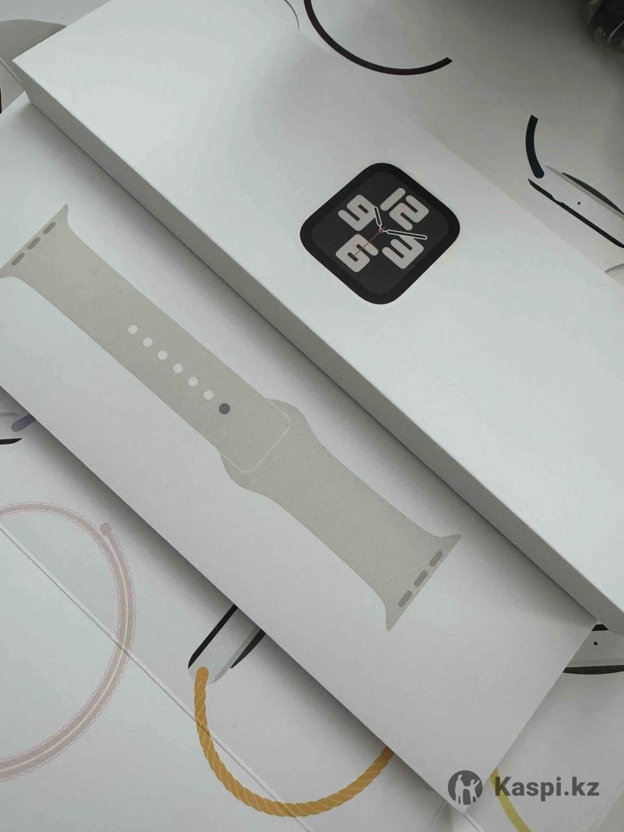 Продаю Apple Watch SE 2-го поколения, 40 мм, серебристый корпус + белый ремешок. Покупались в начале августа 2025, состояние отличное, без царапин. Все функции работают: шагомер, пульс, GPS, уведомления, водозащита. Батарея держит хорошо. В комплекте: часы, ремешок, зарядка (коробка).
