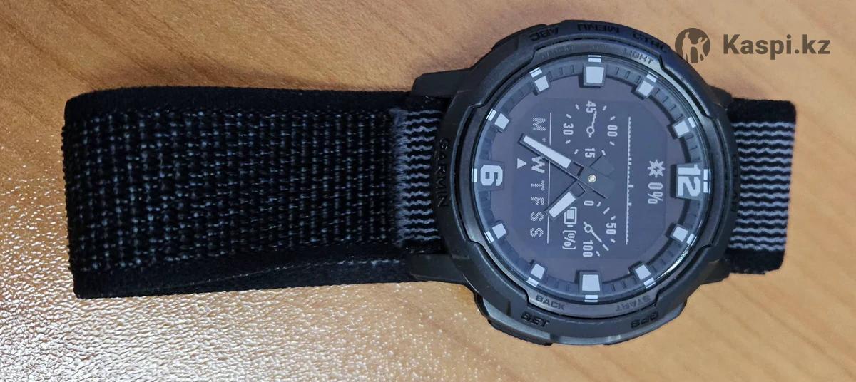 Продам редкие гибридные часы Garmin Instinct Crossover Solar. Это «неубиваемая» модель для тех, кто ценит классику со стрелками, но хочет полный функционал Garmin. Главные преимущества: Реальная автономность: Стабильно держат неделю работы при всех включенных датчиках (постоянный пульс, ВСТР, мониторинг сна и уведомления). Зарядка от солнца (Solar): Встроенная панель позволяет часам работать практически бесконечно при достаточном освещении. Гибридный экран: Физические стрелки с ярким люминофором (светятся в темноте) + цифровой экран для данных. Защита по стандарту MIL-STD-810: Не боятся воды, ударов и грязи. Состояние: Честное 4 из 5. Часы были в активном использовании, поэтому на безеле и корпусе есть характерные потертости и микроцарапины. На работу датчиков, герметичность или точность это никак не влияет. Все функции работают идеально. Комплектация: Оригинальный зарядный кабель. Оригинальный силиконовый ремешок. Дополнительный металлический ремешок (уже установлен). Коробки нет. Поченьу продаю: Перехожу на другую модель.