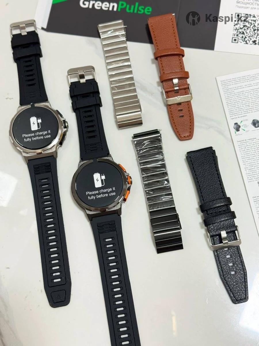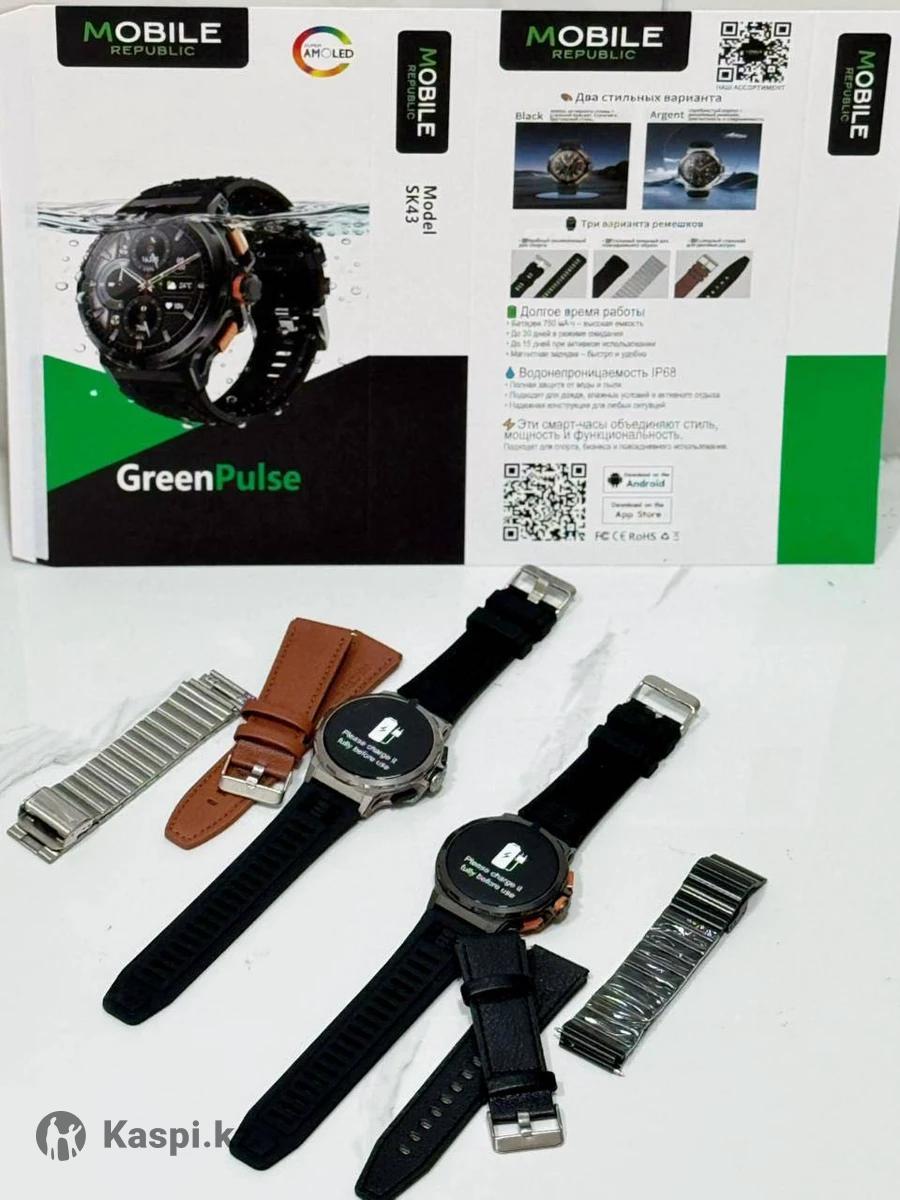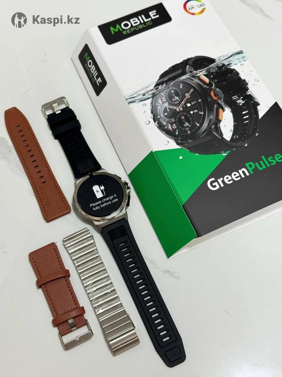 Смарт-часы:GreenPulse водонепроницаемые, яркий AMOLED-экран. Долгое время работы: • Ёмкость батареи — 750 мА·ч • До 30 дней в режиме ожидания • До 15 дней при активном использовании • Магнитная зарядка — быстро и удобно 💧 Водонепроницаемость IP68: Надёжная защита от воды и пыли. Подходят для спорта, плавания, дождливой погоды и активного отдыха. 🎨 Два стильных варианта: • Black — строгий классический стиль • Argent — серебристый корпус с утончённым видом Три варианта ремешков: • Прочный силиконовый • Комфортный кожаный • Элегантный стальной Совместимость: Android и iOS