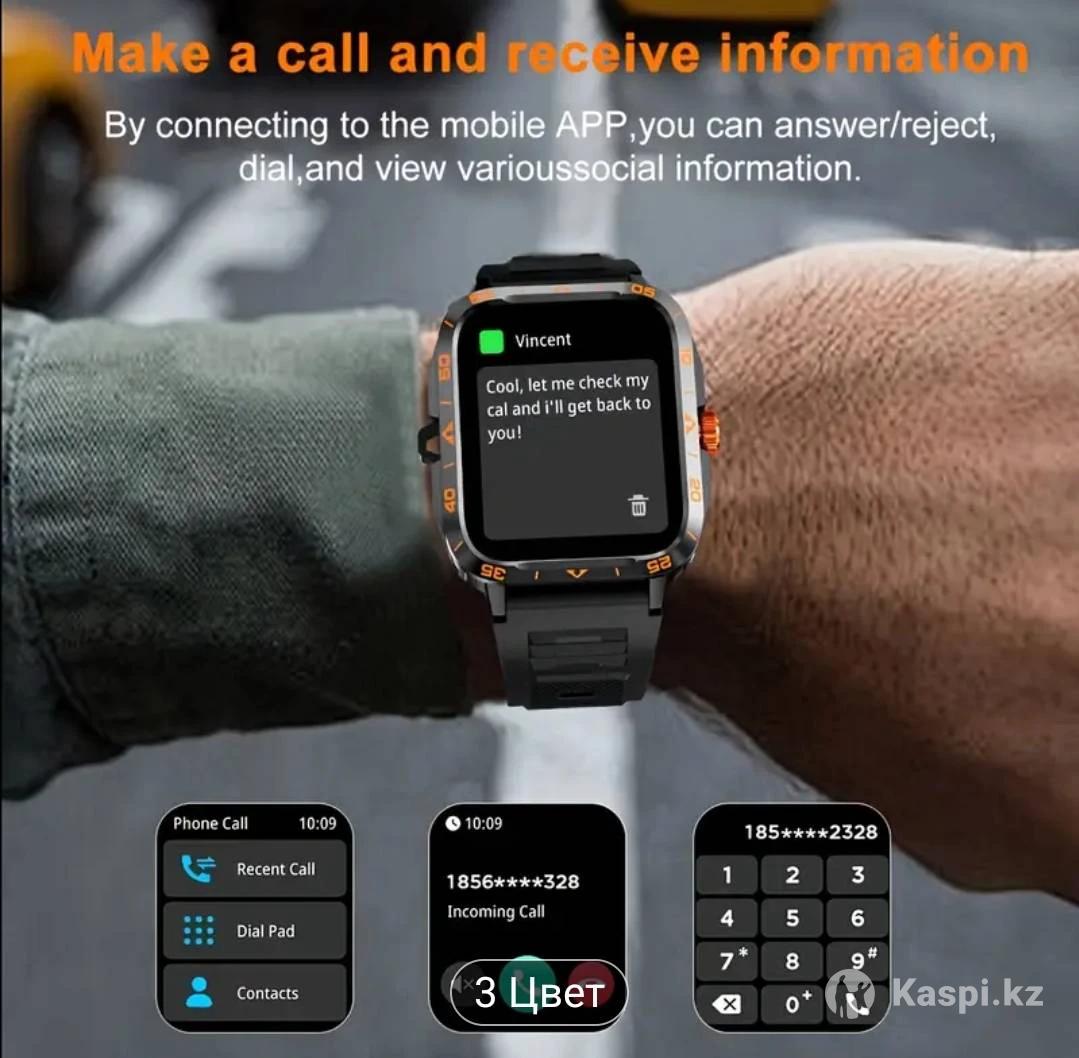 Смарт-часы с LED-дисплеем, альтиметром, барометром, более 100 спортивными режимами, аккумулятором 300 матч, просмотром мультимедийной информации, трекером погоды, шагомером и др. Меню на русском языке с поддержкой ИИ.
