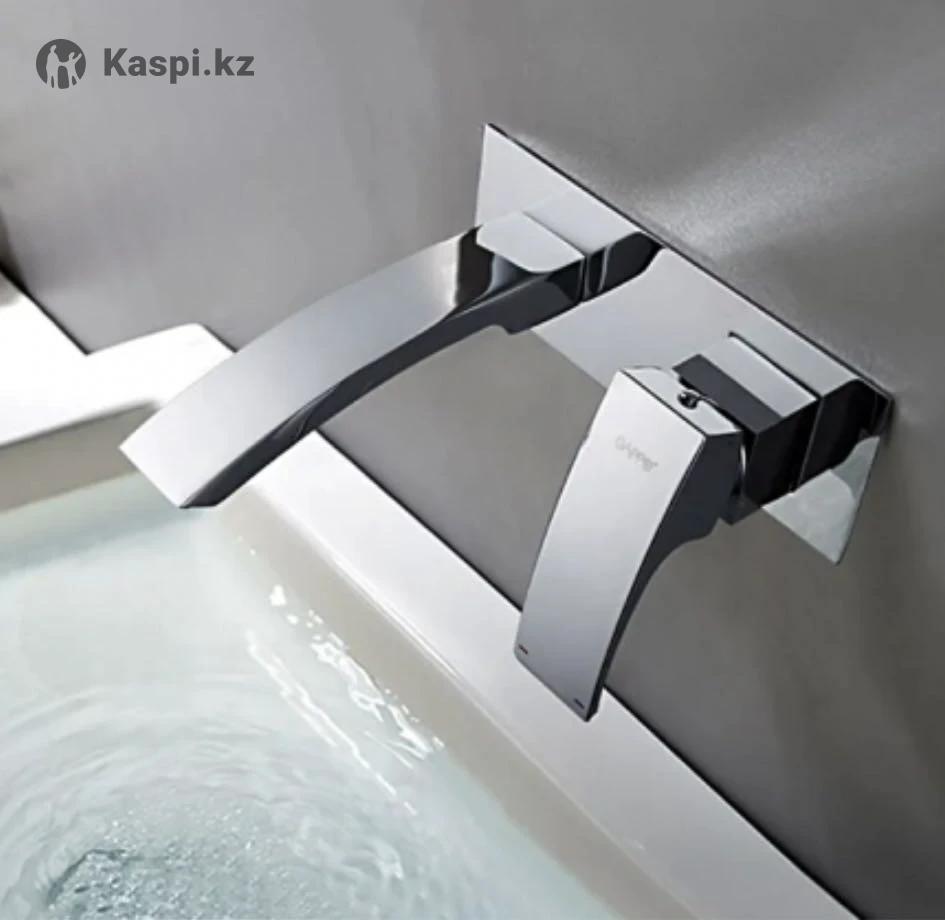 Новый смеситель для ванной или раковины встраиваемый. Цвет-серебро, покрытие-хром, материал корпуса-латунь, глубина-18,5см, высота-14.4см. Комплектация: подводка, крепления.