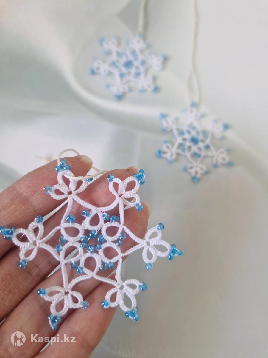 Продам снежинки с бисером ручной работы в технике фриволите, размер 6 см, цена указана за 1 штуку