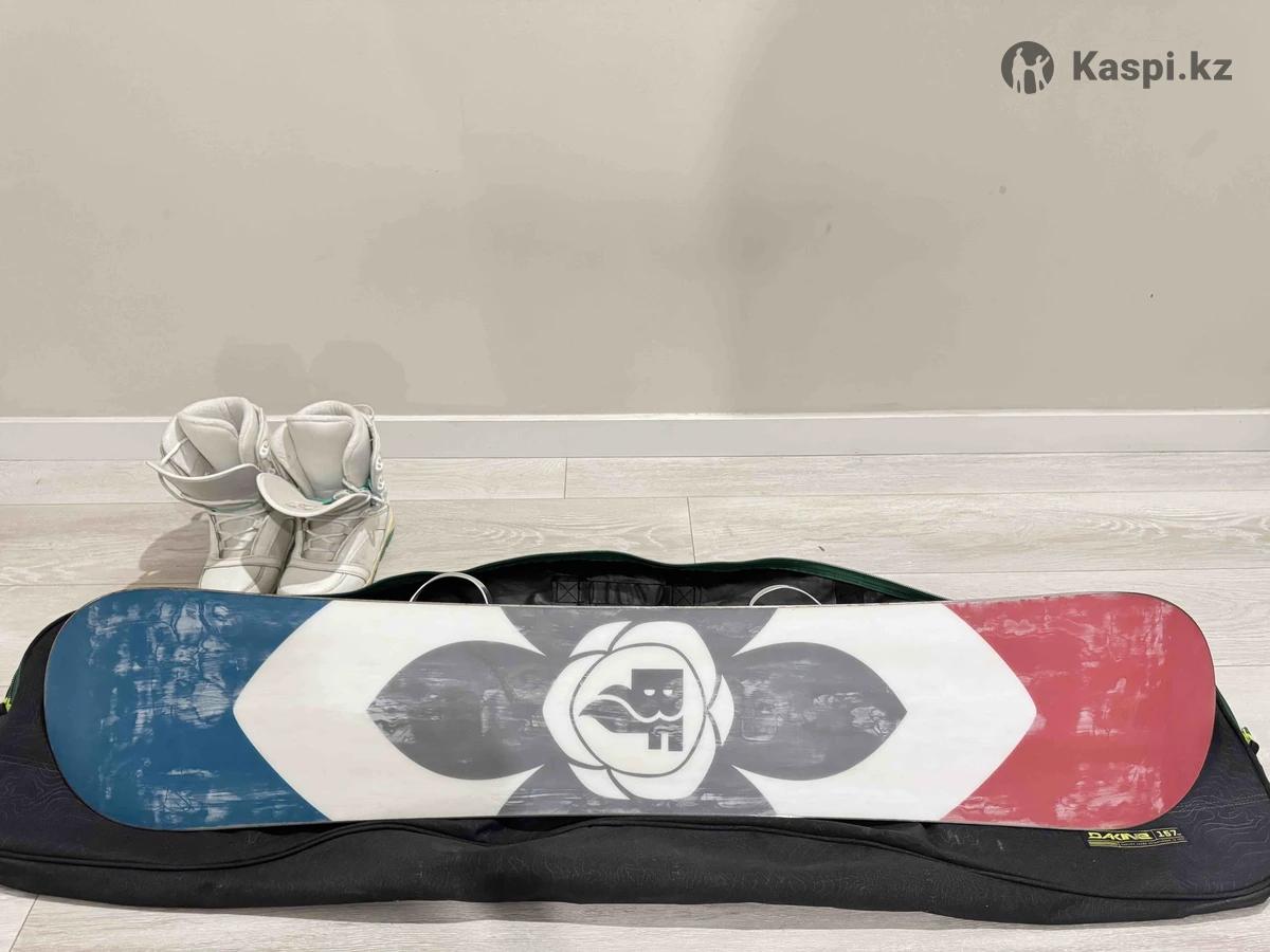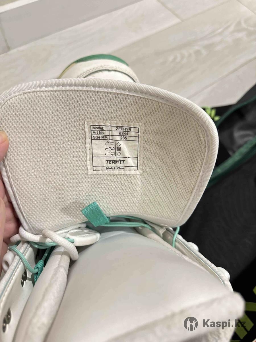 Сноуборд почти в отличном состоянии (остался налет от снега), использовался аккуратно. Все крепежные отверстия целые, застежки работают отлично. Поверхность без повреждений. Ботинки Termit - в хорошем состоянии, на поверхности остались следы от снега, ничего не порвано, внутренний сапожок в отличном состоянии. В подарок чехол и наколенники demix. Торг уместен