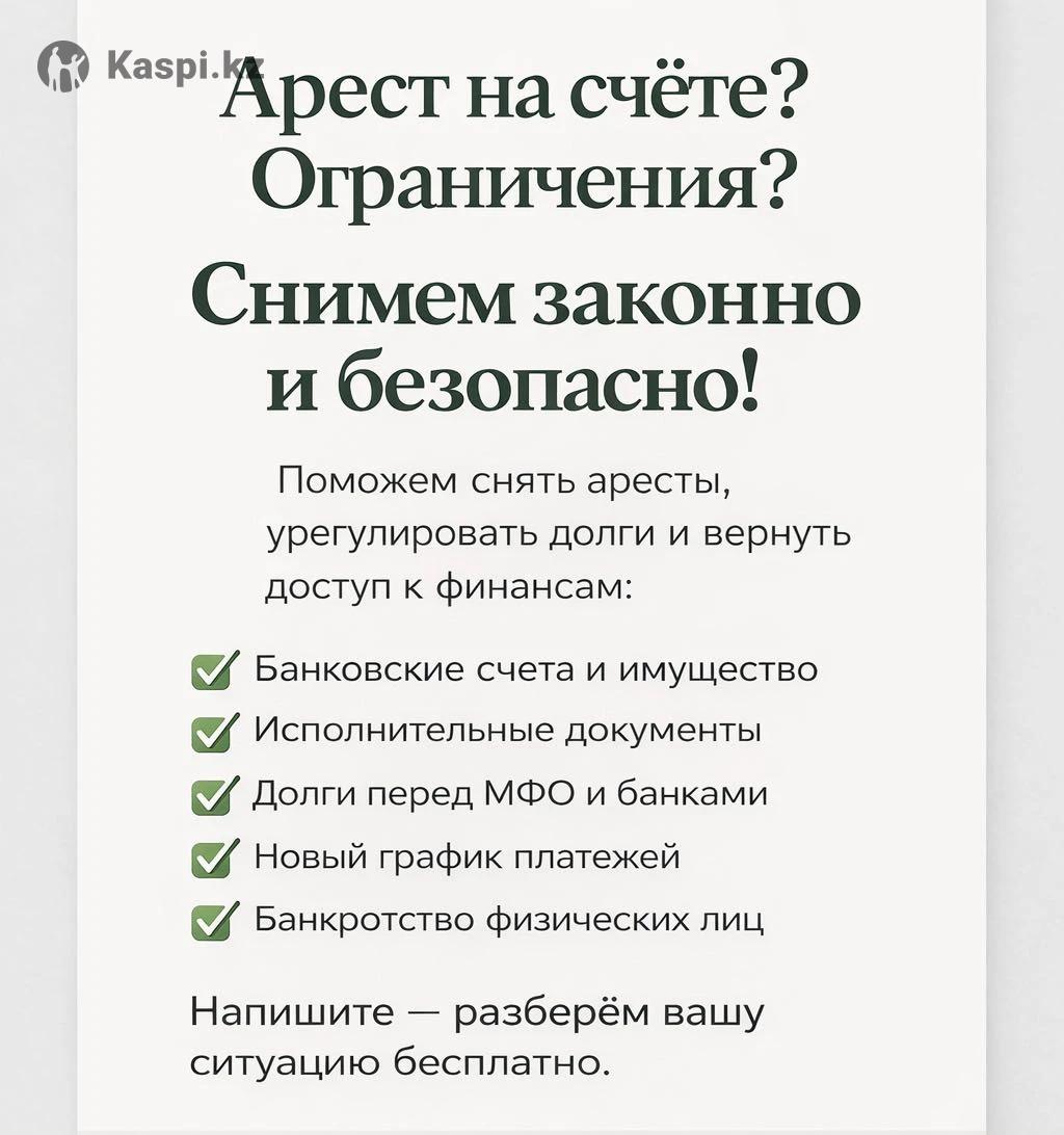 Помогаю законно снять аресты и ограничения, урегулировать задолженности и восстановить доступ к счетам. Снятие арестов со счетов и имущества Отмена исполнительных документов Урегулирование долгов МФО и банков Составление нового графика платежей Банкротство физических лиц Напишите, разберу вашу ситуацию бесплатно и предложу оптимальное решение.