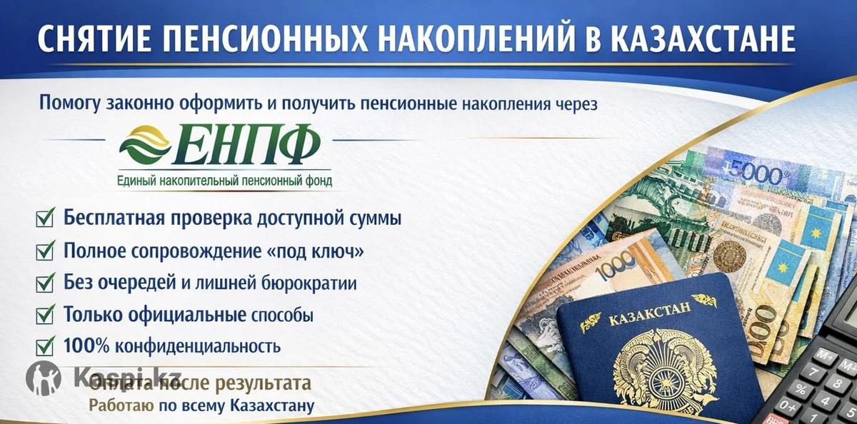 ПЕНСИОННЫЕ ДЕНЬГИ ЛЕЖАТ БЕЗ ДЕЛА? ЗАБЕРИ СВОИ СЕЙЧАС Помогу БЫСТРО и ЗАКОННО снять пенсионные накопления через Единый накопительный пенсионный фонд (ЕНПФ) - Проверка суммы — БЕСПЛАТНО - Без очередей и бумажной волокиты - Полное сопровождение «под ключ» - Только официальные способы - 100% конфиденциальность ОПЛАТА ТОЛЬКО ПОСЛЕ РЕЗУЛЬТАТА Работаю по всему Казахстану