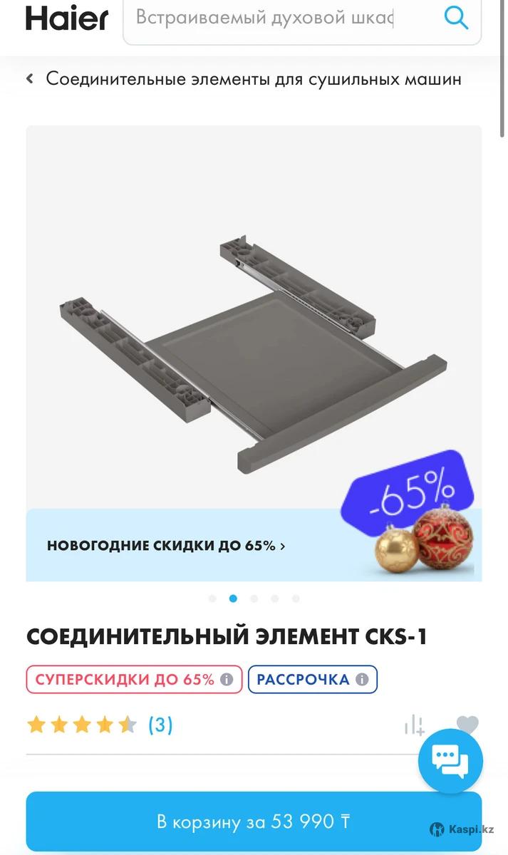 Соединительный элемент с выдвижной полкой для установки стиральной и сушильной машины в колонну. Допускается установка сушильной машины в колонну (сверху) на стиральную машину Haier с глубиной верхней крышки не менее 45 см и шириной 59,5 см, и использованием соединительного элемента Haier Модель CK-1/CKS-1. Цвет серебристый Гарантия 12 месяцев Размеры (Ш х В х Г см) 59.5 x 6.56 x 59.2 Абсолютно новый товар. Нам не подошел под стиральную машину по размерам, плохо проконсультировали нас в магазине. Купили за 54 тыс, отдадим за 30 тыс. Самовывоз с района верхней Меги.