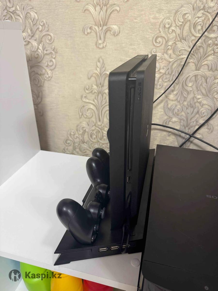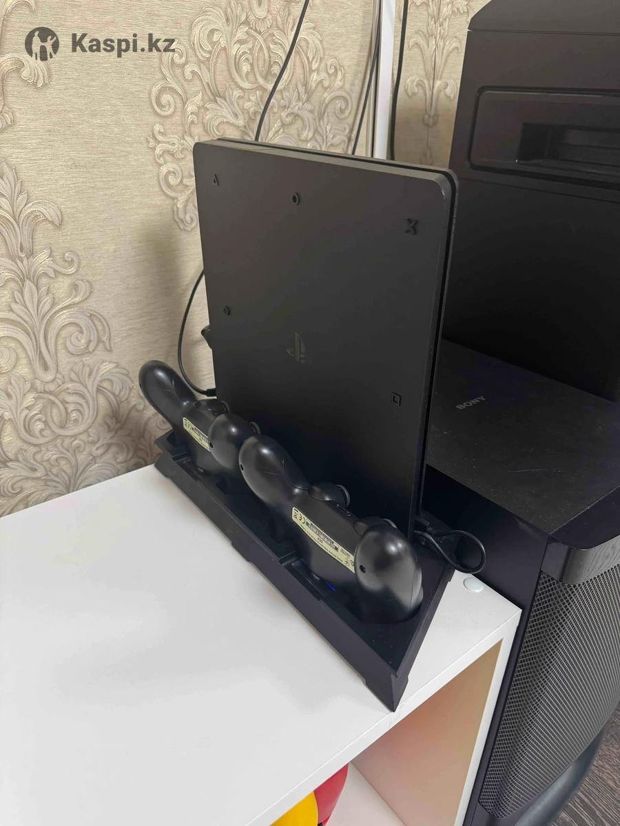 Sony PlayStation 4 Slim 500Gb. Прошитая. Можно устанавливать любые игры самостоятельно и бесплатно. Два геймпада. Док-станция для охлаждения приставки и зарядки геймпадов.