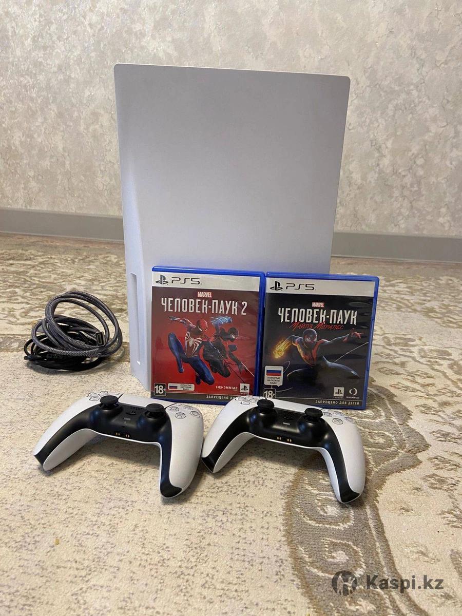 Продаётся Sony PlayStation 5 в отличном состоянии. Работает идеально, без каких-либо проблем. Использовалась аккуратно дома. Комплект: • 2 джойстик + 1 джойстик не ориг • Зарядное устройство для джойстиков • HDMI кабель • кабель питания Установлены игры: • Grand Theft Auto V • Mortal Kombat • EA Sports FC 24 (FIFA 24) • EA Sports UFC 4 • Ghost of Tsushima • Ghost of Yōtei • Marvel's Spider-Man • Marvel's Spider-Man: Miles Morales • Marvel's Spider-Man 2