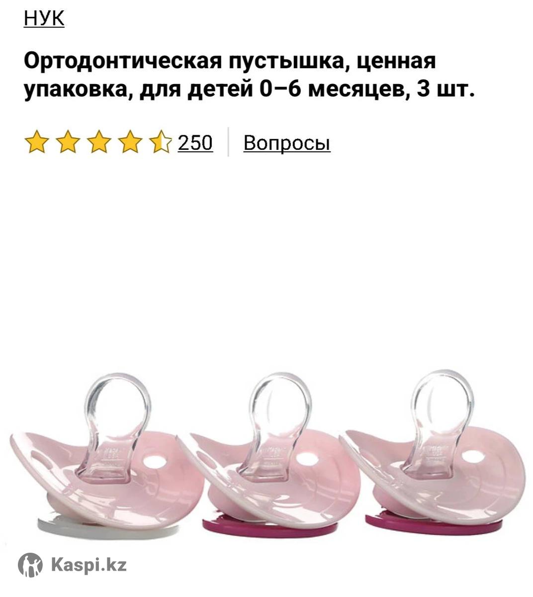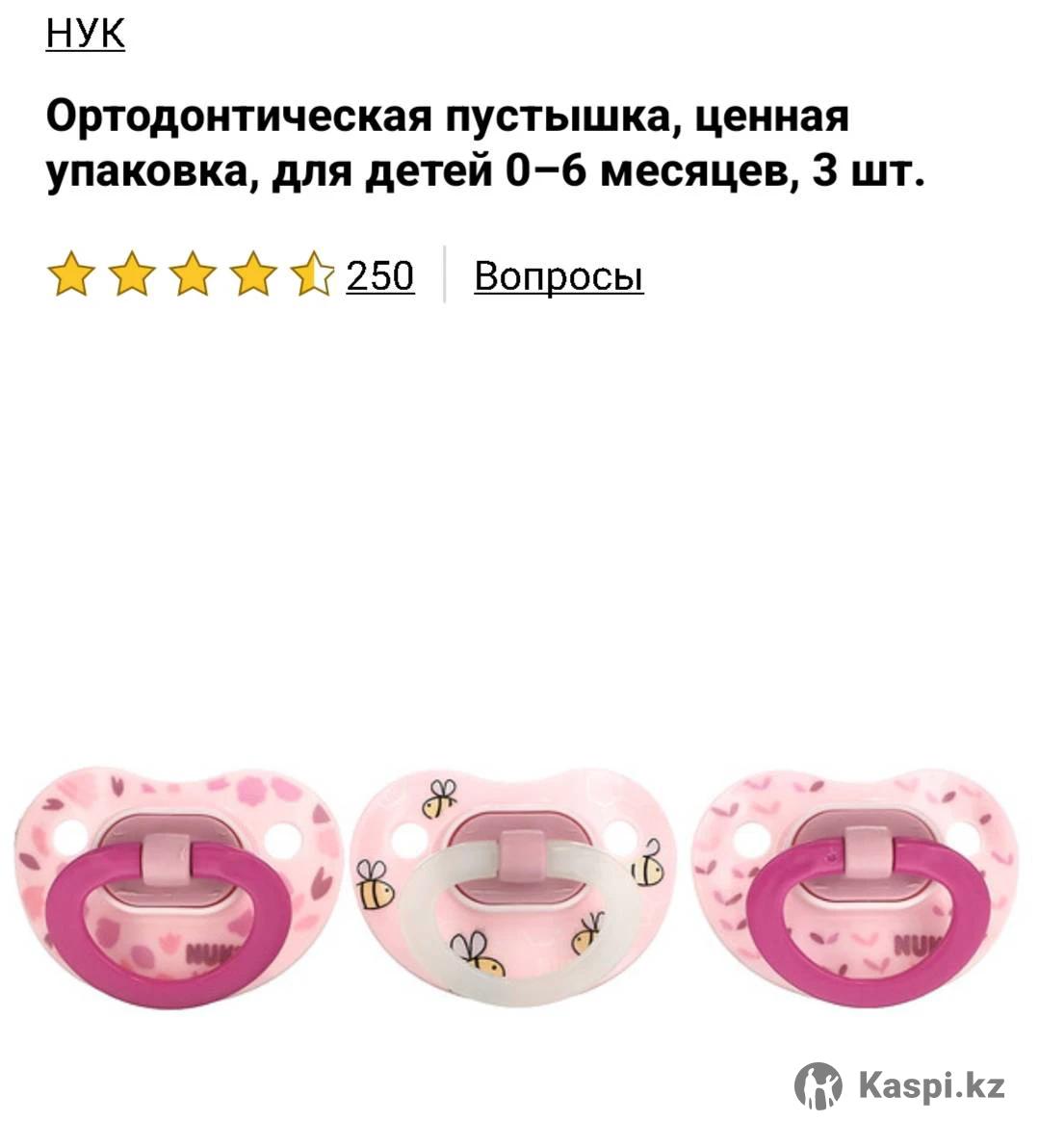 Цена за упаковку (3 штуки) 4500 тенге Набор пустышек 0-6 месяцев Заказывала с Айхерб, не пригодились.