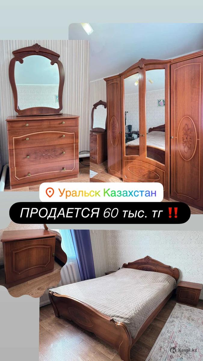 🔥 СРОЧНО! Шикарная спальная гарнитура по супер цене — всего 60 000 тг + МАТРАС В ПОДАРОК! 🔥 Идеальный вариант для тех, кто хочет сразу обустроить спальню без лишних затрат 💫 ✨ Что вы получаете: • Большую удобную кровать • Вместительный шкаф с зеркалами • Комод с зеркалом • Прикроватные 2 тумбы 🎁 И МАТРАС В ПОДАРОК — заезжай и живи! 💎 Классический стиль — всегда актуален 💎 Красивый тёплый цвет дерева 💎 Много места для хранения 💎 Аккуратное состояние ⚡ За такую цену — это находка, а не просто мебель! 📍 Уральск 📞 ❗ Не откладывай, такие варианты быстро уходят!