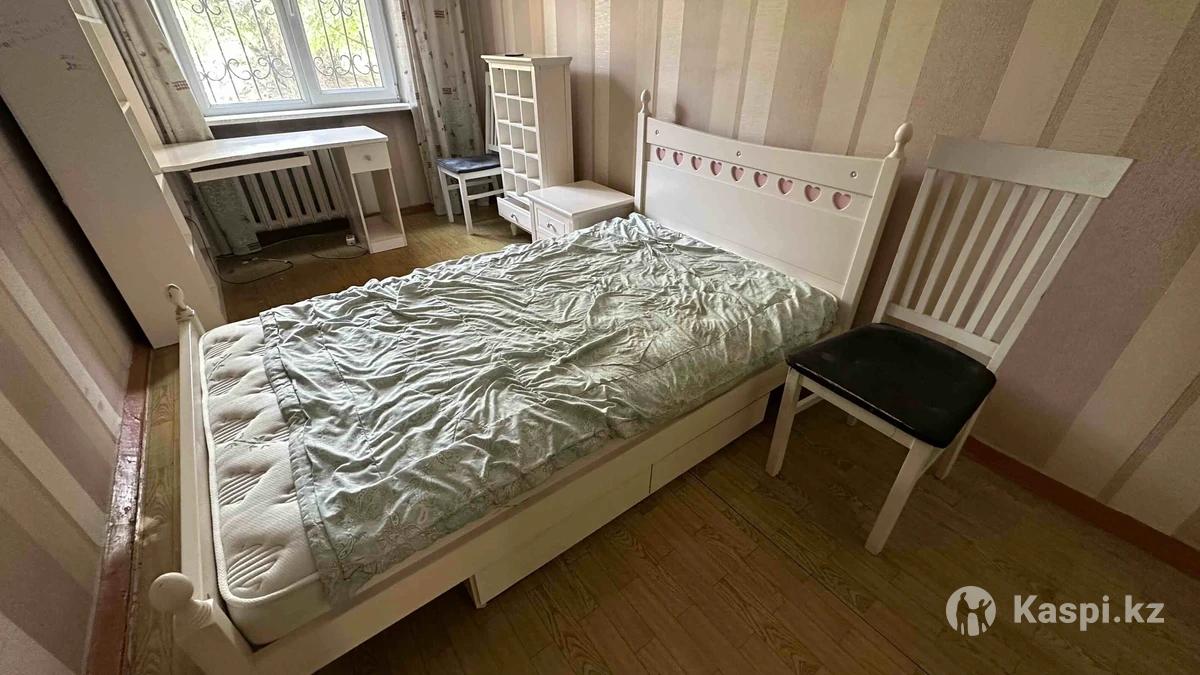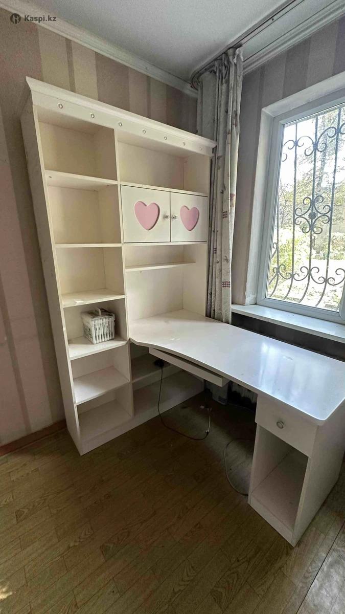 Продаю спальный гарнитур, в комплекте шкаф-стол, 2 стула, прикроватная тумба, шкаф для вещей, полка с мелкими ячейками. Кровать с двумя встроенными ящиками. Матрац старый. Самовывоз! Торг!