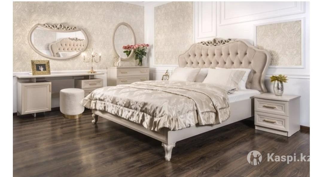 Добрый день! Срочно продам свой почти новый спальный гарнитур! Находится в поселке Бирлик в сторону Талгар у родителей мужа! Использовался всего неделю. С мужем живем в городе по работе. Продаем в связи с переездом.. Негде ставить🤧Выбирала на свой «Кыз жасау» с огромной любовью 🥰 Гарнитур нежный с 💎. Продам с Матрасом 🤗 Размер кровати 180:200. Шкаф с 5 дверью❤️ Покупала в российском магазине ЭРА мебель.. Дерево высококачественный 👍 есть Туркестанской сборки... Покупала за 900.000🥲доставка вышло на 30.000 до поселка🫠